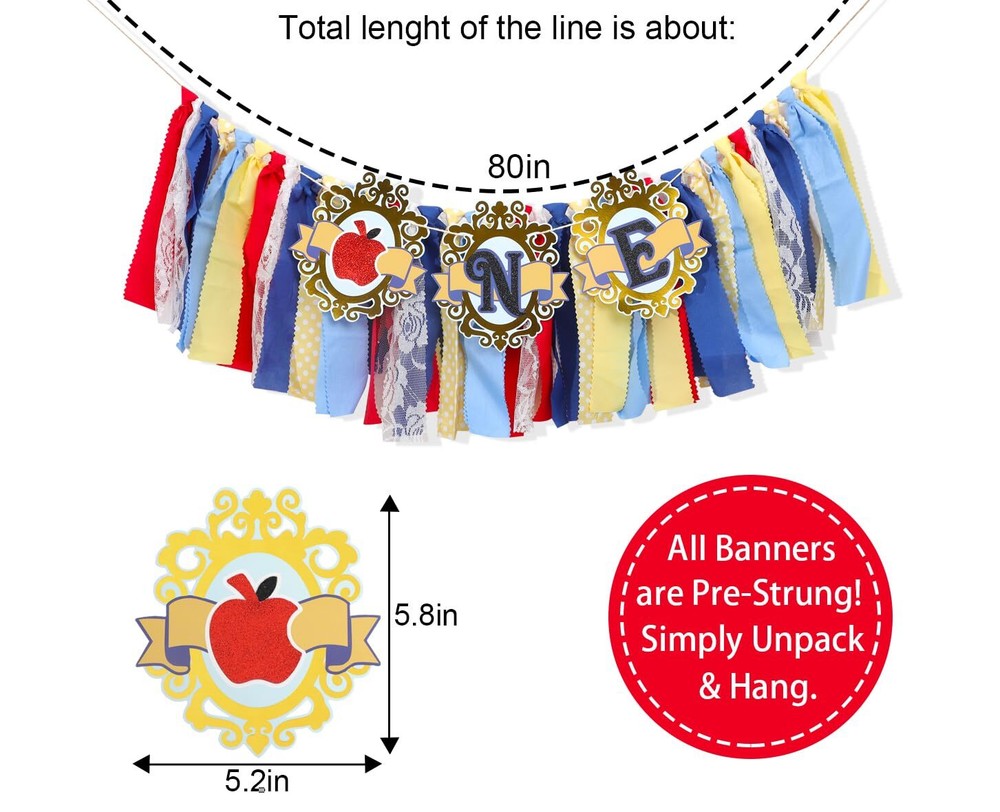 Girls First Birthday High Chair Banner - Princess One High Chair Decoration,Apple First Highchair Banner, Princess 1st Birthday Cake Crush Props GIRLS FIRST BIRTHDAY BANNER - Princess First Birthday Decorations, this highchair first birthday banner is made of beautiful cardstock with sparkling ONE font, the ribbons are also matched to the princess theme, the ribbons are made of high quality polyester/cotton fabrics that are durable and long lasting, this combo is the perfect addition to your one year old princess birthday party. PERFECT PHOTO PROPS - This banner set is great for photo shoots, birthdays, costumes and dress up fun, hang it on your little princess's high chair to add the perfect touch to this princess themed party. ADJUSTABLE SIZE - This Princess 1st Birthday Banner measures 7.8 inches in height and 80 inches in length, the cardstock measures 5.8*5.2 inches, it can be easily adjusted and securely hung on a highchair, wall or tabletop to create the perfect birthday scene. THOUGHTFUL GIFT IDEAS - This Princess 1st Birthday High Chair Banner can also be used as a thoughtful gift for friends and family. It's a unique and memorable surprise that will leave a lasting impression on their special day. AFTER-SALES SERVICE - Customer satisfaction is our goal, if you are satisfied with the product, please feel free to us. We will provide you with the most satisfactory solutions and services. GIRLS' FIRST BIRTHDAY BANNER, OUR BANNERS ARE DISNEY PRINCESSES, USE OUR BANNERS TO DECORATE YOUR PRINCESS'S FIRST BIRTHDAY PARTY, YOUR BABY WILL BE THE CENTER OF ATTENTION This High Chair One Year Banner is made from beautiful card stock. Glittery ONE, paired with brightly colored fabrics, makes a great decoration for your one-year-old princess birthday party. Decorate her high chair with our adorable banners to transform it into a whimsical perch fit for a princess Ideal for photos, birthdays, costume and dress-up fun, or to pass on the beauty to family and friends. Oh, I think your family and friends will be so touched when they receive this gift. Get ready for a joy-filled celebration In addition to celebrating, this banner set is a precious keepsake that you can hang on your wall as a beautiful reminder of your baby's first birthday. Specifications The total length of this banner is 80 inches, and the size of the card stock is 5.8*5.2 inches. In addition to being a cute accessory, it can also bring precious memories that your princess will never forget. Celebrate your baby's first birthday with us and make this special moment even more memorable! Package contents Princess's first birthday banner*1 Finally, thank you for visiting. Create the perfect first anniversary for your child with our Princess Collection Birthday Banners! At the same time customer satisfaction is our goal, if you are satisfied with the product, please feel free to us. We will provide you with the most satisfactory solutions and services. Shipping We offer FREE shipping on all orders! We ship within Three business days of payment, usually sooner. We use a selection of shipping services such as UPS, FedEx, USPS etc., unable to choose a carrier. We only ship to the lower 48 states, no APO/FPO addresses or PO Boxes allowed. Sellers generally can’t change the shipping address that you provided at checkout. Local pickups and combined shipping options are not provided at this time. International buyers - please note: Import duties, taxes, and charges aren't included in the item price or postage cost. These charges are the buyer's responsibility. Return You can return a product for up to 30 days from the date you bought it by using the seller's FREE RETURN LABEL only. Any product you return must be in the same condition you received it and in the original packaging. International buyers - Rejection and return of the product requires the buyer to pay all shipping and return costs. Please return with the reason "Order mistake" or "Changed my mind" or "Does not fit" for a refund, which would be greatly appreciated. If the buyer wishes to return the items for a refund or replacement, please contact the seller to obtain a free return label. The refund or replacement will be processed using the tracking number of the return label, which will be provided solely by the seller. Other methods of return that have not been approved by the seller will not be processed for a refund or replacement. Payment We accept payment by any of the following methods: eBay Manage Payment Please pay as soon as possible after winning an auction, as that will allow us to post your item to you sooner! Feedback Customer satisfaction is very important to us. If you have any problem with your order, please contact us and we will do our best to make you satisfied. Please be aware that our products are stored and fulfilled by third-party warehouses and manufacturers across the United States (also known as third-party fulfillment or product sourcing). These companies are completely trustworthy, and we are confident in entrusting all of our valuable items to them for the safety and best delivery system for our store. Contact Us If you have any queries, please contact us via ebay. We usually respond within 24 hours on weekdays. Please visit our eBay store to check out other items for sale! Thank you for shopping at our store.