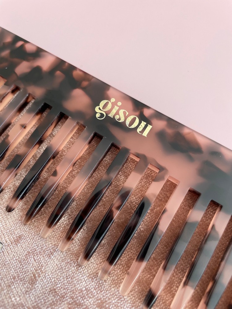 Gisou Texture Comb Released in 2017 Hand carved in Switzerland Made of high quality cellulose acetate. Logo isn't perfect but still looks good for its age. First three photos are of the actual item for sale. Sold as-is, excellent condition. Brand new, never used with pink storage pouch.