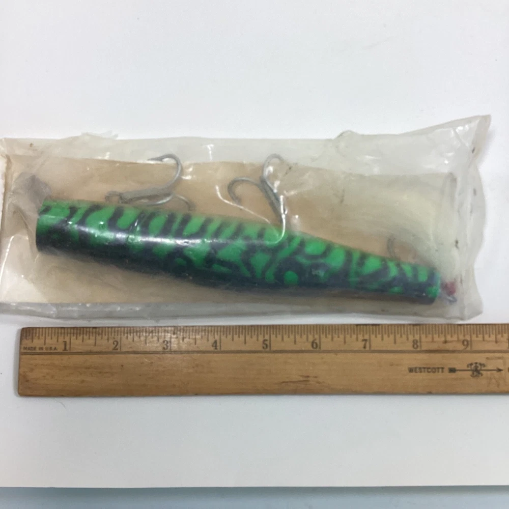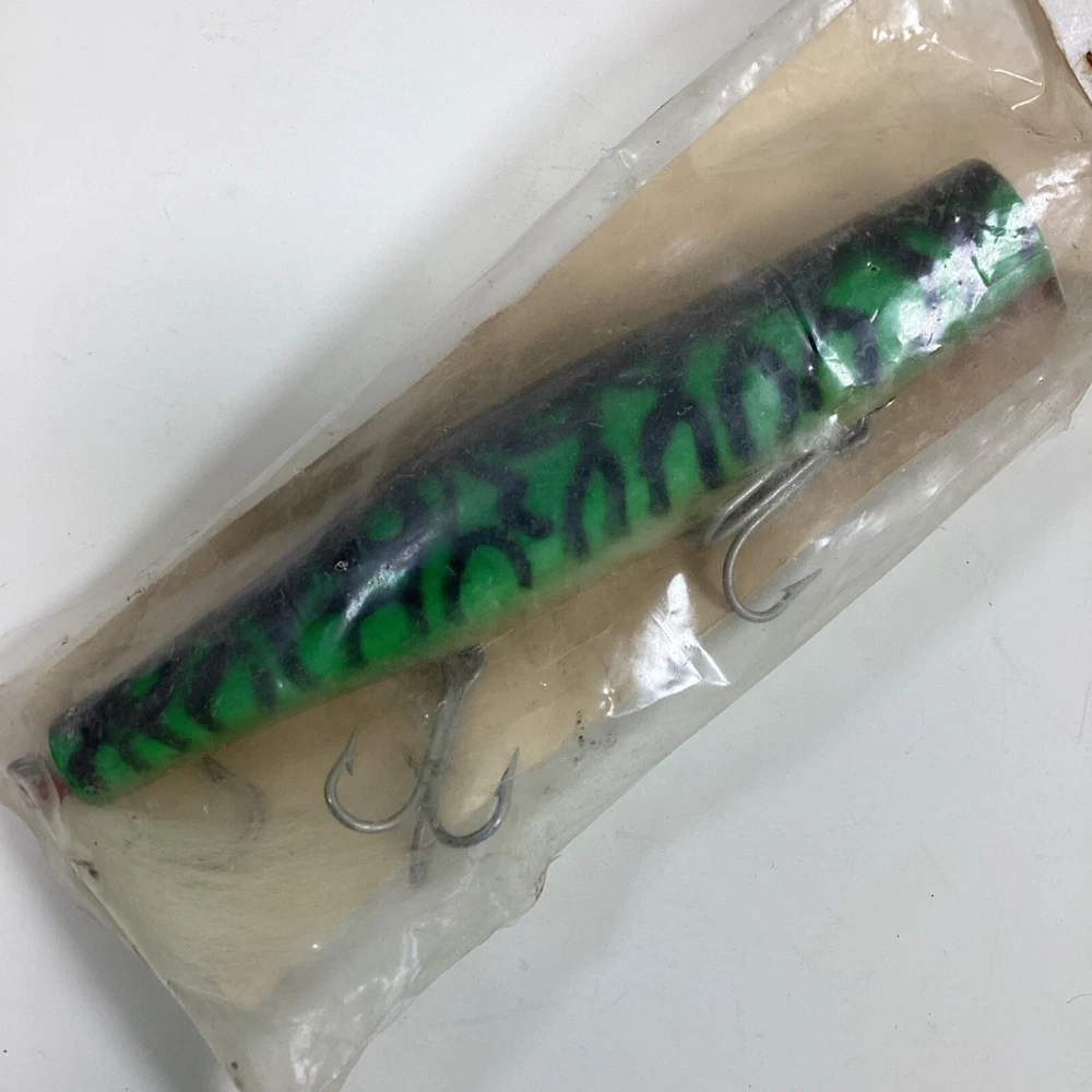 GIbbs Fishing Lures Wood Danny The Original Made In The USA New, Old Stock Sealed With Damaged Packaging From Storage Measures Approximately 9" Long Green And Black