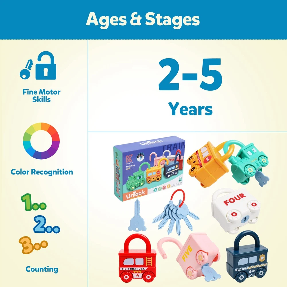 GKDOMS Montessori Learning Toys Sorting & Matching Locks and Keys Toddlers Sensory Car Activity Fine Motor Toy, Thank You Birthday Gifts for Kids Age 2-5 Years, Back to School Package Contain: 6 vehicles + 7 keys + 1 key ring 【6-Pack Fun Learning Toy Locks and Keys Set】This Montessori Kids Learning Toy Car Set comes with 6 lock-shaped vehicles, 6 keys(plus 1 skeleton key) and key ring. Kids are fascinated with the train,ice cream car, school bus, police car, firetruck, ambulance. 【Early Numeric Learning Toys Set】BUILD early math sequencing and number recognition ability, By using words, numbers and countable shapes to teach toddlers 2 3 4 5. Toddlers who fascination for locks and keys, discover new number and color identification skills with every turn of the key. 【Montessori Preschool Learning Toy Set】This Toddler Sensory Activity toy car set is very helpful with teaching counting and fine motor skills as well. Babies can playing as a push car toy. Toddlers discover new number and color identification skills with every turn of the key. 【Safe BPA-free Montessori Locks and Keys Set】The toy cars have bright colors, Smooth with rounded edges and roll well across the floor. The cars & keys are sized well for small hands.The keys are thick and he has no trouble getting the keys in, it is a little hard to turn the key and unlock but that become easier with more use. 【Fun Learning Toy Cars Gift for Boys and Girls】This montessori educational locks and keys toy cars set is ideal learning toy for a growing toddler. Perfect for curious little minds and who fascination for locks and keys.Suitable for baby 18 months and up, toddler 2 3 4 5 great travel toy. Even great for Homeschool. Ideal gift for Bithday Party, Holidays Carnival, Christmas, Thanksgiving, Easter Basket Stuffers. Package Contain: 6 vehicles + 7 keys + 1 key ring 【6-Pack Fun Learning Toy Locks and Keys Set】This Montessori Kids Learning Toy Car Set comes with 6 lock-shaped vehicles, 6 keys(plus 1 skeleton key) and key ring. Kids are fascinated with the train,ice cream car, school bus, police car, firetruck, ambulance. 【Early Numeric Learning Toys Set】BUILD early math sequencing and number recognition ability, By using words, numbers and countable shapes to teach toddlers 2 3 4 5. Toddlers who fascination for locks and keys, discover new number and color identification skills with every turn of the key. 【Montessori Preschool Learning Toy Set】This Toddler Sensory Activity toy car set is very helpful with teaching counting and fine motor skills as well. Babies can playing as a push car toy. Toddlers discover new number and color identification skills with every turn of the key. 【Safe BPA-free Montessori Locks and Keys Set】The toy cars have bright colors, Smooth with rounded edges and roll well across the floor. The cars & keys are sized well for small hands.The keys are thick and he has no trouble getting the keys in, it is a little hard to turn the key and unlock but that become easier with more use. 【Fun Learning Toy Cars Gift for Boys and Girls】This montessori educational locks and keys toy cars set is ideal learning toy for a growing toddler. Perfect for curious little minds and who fascination for locks and keys.Suitable for baby 18 months and up, toddler 2 3 4 5 great travel toy. Even great for Homeschool. Ideal gift for Bithday Party, Holidays Carnival, Christmas, Thanksgiving, Easter Basket Stuffers. Shipping from the USA All of our products are shipped from the USA, ensuring quick delivery to your destination. Payment We offer the following payment methods: PayPal, credit card, bank transfer, and eBay's secure payment system. Free Shipping & Free Returns Shipping within the USA is FREE. Additionally, any return is absolutely free for you. Risk-Free Purchase You have the option to return an item within 30 days without any justification. We cover the return shipping costs! Fast Shipping We ship immediately upon receipt of payment. Generally, the package is delivered within 2-3 days in the USA. If it takes longer, we will contact you. Quality and Costs Made in Europe, USA, China No customs fees or additional charges Total satisfaction guarantee Invoice with declared VAT available upon request in .pdf format Feedback Your feedback is very important to us. After you pay for your purchase, you will automatically receive positive feedback from us.