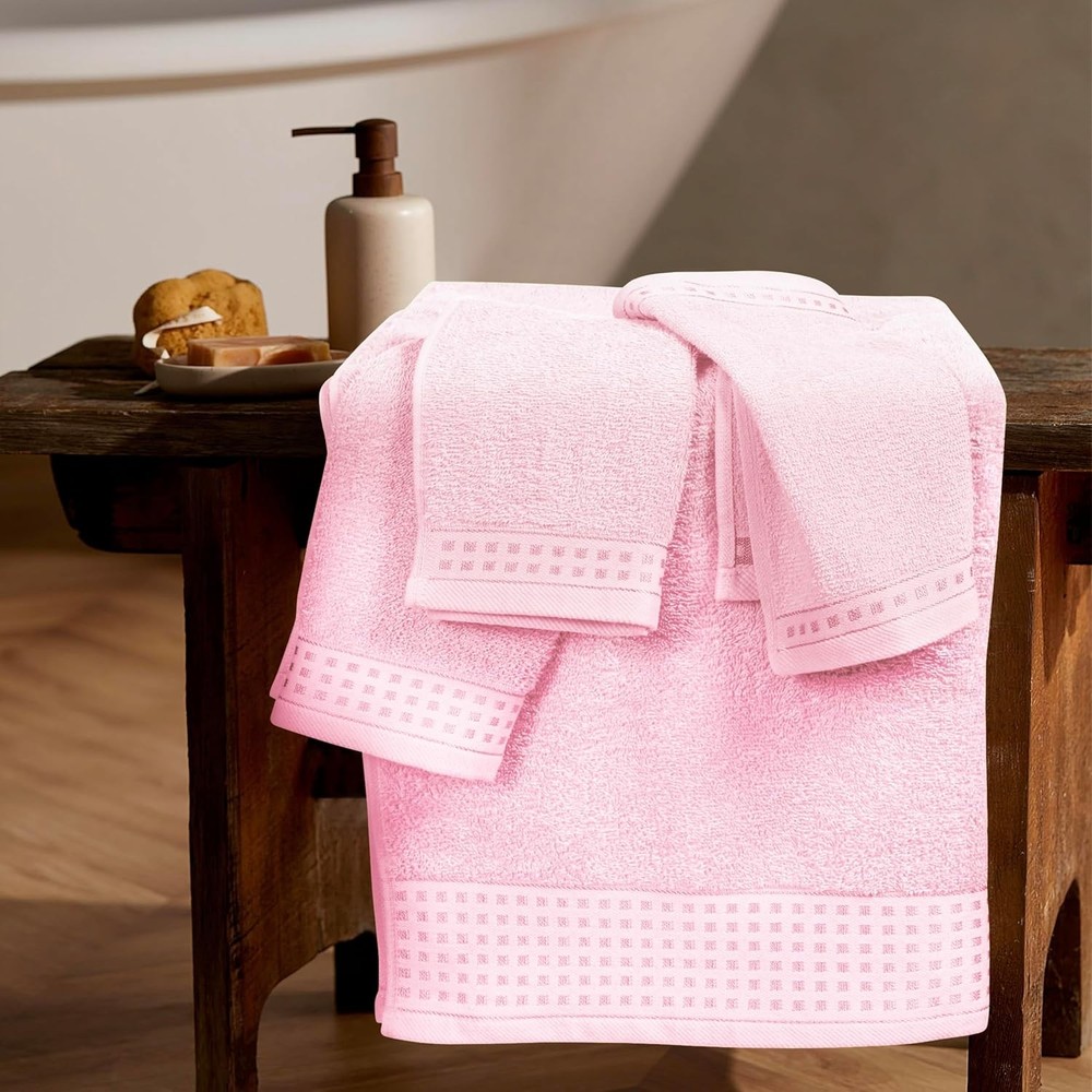 GLAMBURG Ultra Soft 3 Pack Cotton Towel Set, Contains a Bath 3 Pink Product Details Color: Pink Brand: GLAMBURG Age Range (Description): All Ages Material: Cotton Product Dimensions: 54.33"L x 11.81"W Number of Items: 3 Style: Casual Pattern: Solid Special Feature: Bagless Size: 3 Pack Set Unit Count: 3.0 Count Fabric Type: 100% Cotton Manufacturer: GLAMBURG Item Weight: 14.9 ounces Each set contains one oversized bath towel 28x55 inches, one hand towel 16x24 inches & one wash cloth 12x12 inches 100% Pure cotton for softness, absorbency & durability - Outdoor Lightweight Quick Dry Towel Set Complimented set for daily use, hotel & spa, quick drying & multipurpose usage 100% Natural materials & free from harmful chemicals / materials - safe for you & your family Machine washable & dryable, wash in cold water, tumble dry low - wash separately before first use GLAMBURG cotton towel sets is a beautiful and carefully crafted product with lot of attention to details. Basic towel, quality product, low cost, everyday use, soft feel and high absorbant. Eco friendly. Its less weight help to consume less water in washing, less energy in drying, less detergent for laundry. Sustainable product without compromising on the comfort and style. Made in a state of the art vertically integrated facility.