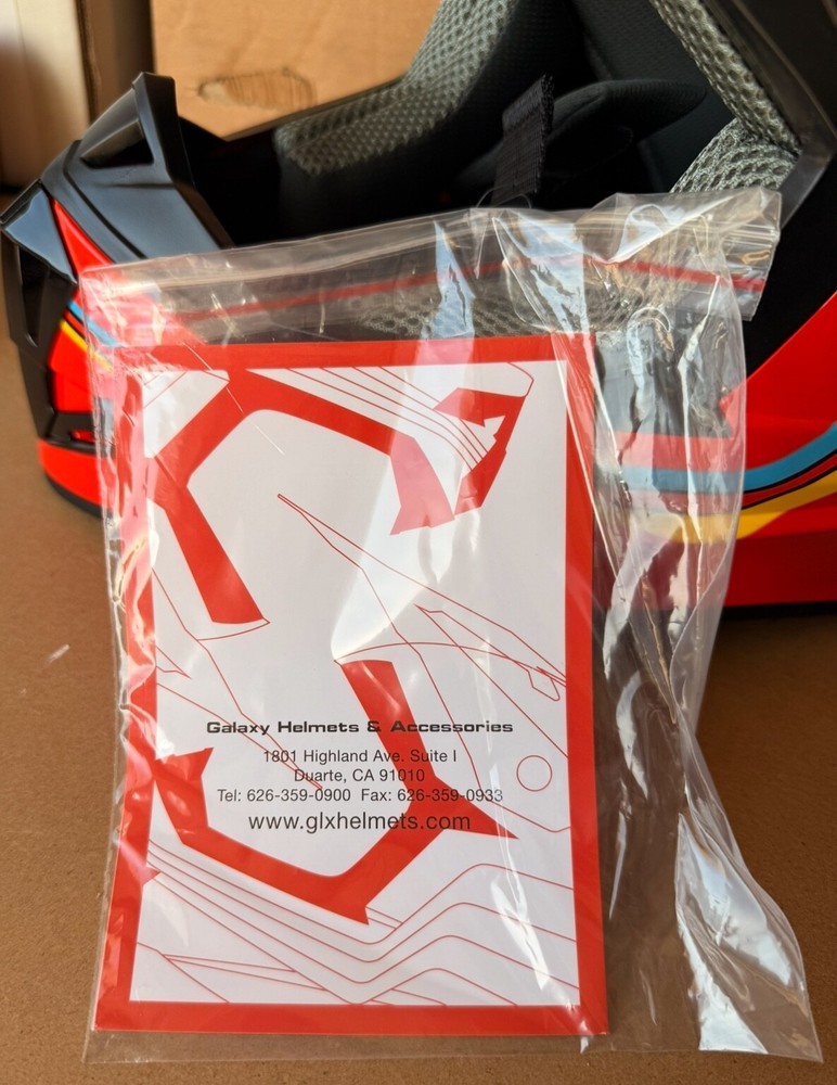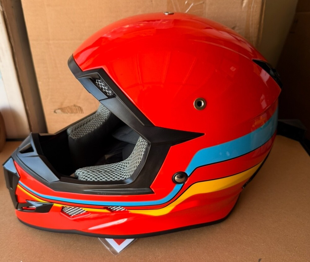 Brand new GLX GX623 youth helmet combo in retro red – Size: Large – DOT certified for safety – Designed for ATV, dirt bike, off-road riding – Includes helmet, gloves, and goggles – Lightweight aerodynamic shell – Padded interior for comfort and protection – Quick-release strap for easy use Retail price: $99.95 Pickup in Roseville