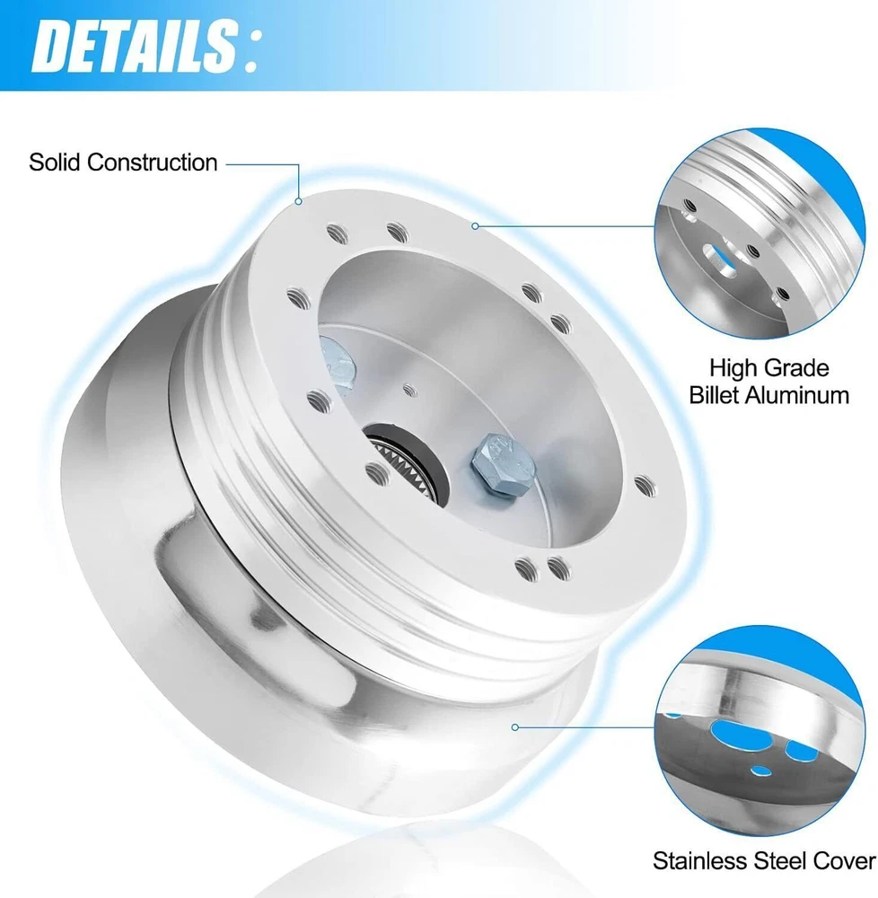 5 & 6 hole steering wheel hub adapter. Fits both standard 5 and 6 hole patterns, and any of our 5 or 6 hole wheels. Will not work with Nardi/Personal's 6 hole pattern. Description: 【High Quality】 【Function】 【Easy Installtion】 Fit for following vehicles: for Flaming River/ Ididit using late model for GM/Chevy splines: All Years; for Chevrolet (excluding Corvette): All Models 1969-94 (*excluding. Corvette, Sprint, Spectrum, 86-88 Nova). for Chevrolet / GMC (Trucks and Vans): Truck Models: 1974-1994. for Chevrolet / GMC (Trucks and Vans): El Camino, Sprint, Caballero: 1968-1988. for Chevrolet / GMC (Trucks and Vans): for Chevy/GMC Van: 1982-1994 for Chrysler Corp-DOMESTIC CARS (for Dodge, for Chrysler, for Plymouth): Tilt Column: 1978-1981. for Chrysler Corp-DOMESTIC TRUCKS & VANS (f For GM Chevy 5 & 6 Hole Steering Wheel Polished Hub Adapter Flaming River Ididit 5 & 6 hole steering wheel hub adapter. Fits both standard 5 and 6 hole patterns, and any of our 5 or 6 hole wheels. Will not work with Nardi/Personal's 6 hole pattern. Description: 【High Quality】This adapter made of high-quality aluminum billet with polished finish, designed for superior durability, corrosion resistance 【Function】Wheel hub adapters ensure a secure and reliable connection between the steering wheel and steering column, improving handling and overall driving experience. Enhance overall steering response, control, and driving experience 【Easy Installtion】Direct bolt-on Installation and quick disassembly Fit for following vehicles: for Flaming River/ Ididit using late model for GM/Chevy splines: All Years; for Chevrolet (excluding Corvette): All Models 1969-94 (*excluding. Corvette, Sprint, Spectrum, 86-88 Nova). for Chevrolet / GMC (Trucks and Vans): Truck Models: 1974-1994. for Chevrolet / GMC (Trucks and Vans): El Camino, Sprint, Caballero: 1968-1988. for Chevrolet / GMC (Trucks and Vans): for Chevy/GMC Van: 1982-1994 for Chrysler Corp-DOMESTIC CARS (for Dodge, for Chrysler, for Plymouth): Tilt Column: 1978-1981. for Chrysler Corp-DOMESTIC TRUCKS & VANS (for Dodge, for Chrysler, for Plymouth): 2/4WD Pick-up, Trailduster, Ramcharger, Van: 1979-1981. for JEEP: CJ5, CJ6, CJ7, Wrangler, Cherokee, Wagoneer, Pick-up, Scrambler, Comanche: 1976-1995. for JEEP: Cherokee, Wagoneer, Pick-up: 1974-1975. for OLDSMOBILE: All Models (excluding telescopic column): 1969-1993. for PONTIAC: All (excluding 88-on LeMans): 1969-1993. Will not work with Nardi/Personal's 6 hole pattern. Package Included 1 PC 5 & 6 Hole Billet Steering Wheel Hub Adapter Payment Shipping Return Contact us About us Payment 1.Paypal, Credit Card, G Pay etc, many payment way is accepted. 2.Please be sure your shipping address is correct before make a payment. Shipping 1.We will ship out the item within 1-3 business days after comfirming the payment, appreciate your patience. 2.If the items are broken on the way( we will check the orders clearly before we sent them ),please contact us in 3 days you received it. We will send you a new one or refund your payment. Return 1.We stand behind every buyer.Items can be returned for exchange or refund within 30 days. 2.Please contact us when you have any confusion of our item, we will solve the trouble for you as soon as possible. Contact us 1.This is professional Seller.We will reply your message within 24 hours. 2.Please contact us whenever you have any question about the item. We will deal with it as soon as possible. 3. If you are unhappy with the item or our service,please Contact Us before leave feedback,just give me a chance,thank you! About us 1. Unless specified otherwise, all our products are IN STOCK and are shipped from Local warehouse - Not Overseas! 2. We provide a 30 day Satisfaction Guarantee or your money back (provided items are in the same new and resaleable condition.) 3. We have a PayPal Verified Business Account, please buy with Confidence! 4. Every item will be tesrted before send.We know our products well and if we don't have the answers we will do our best to find them for you! 5. Our friendly team look forward to serving you! Your satisfaction is our No.1 Priority We will do our best to satisfacy you.