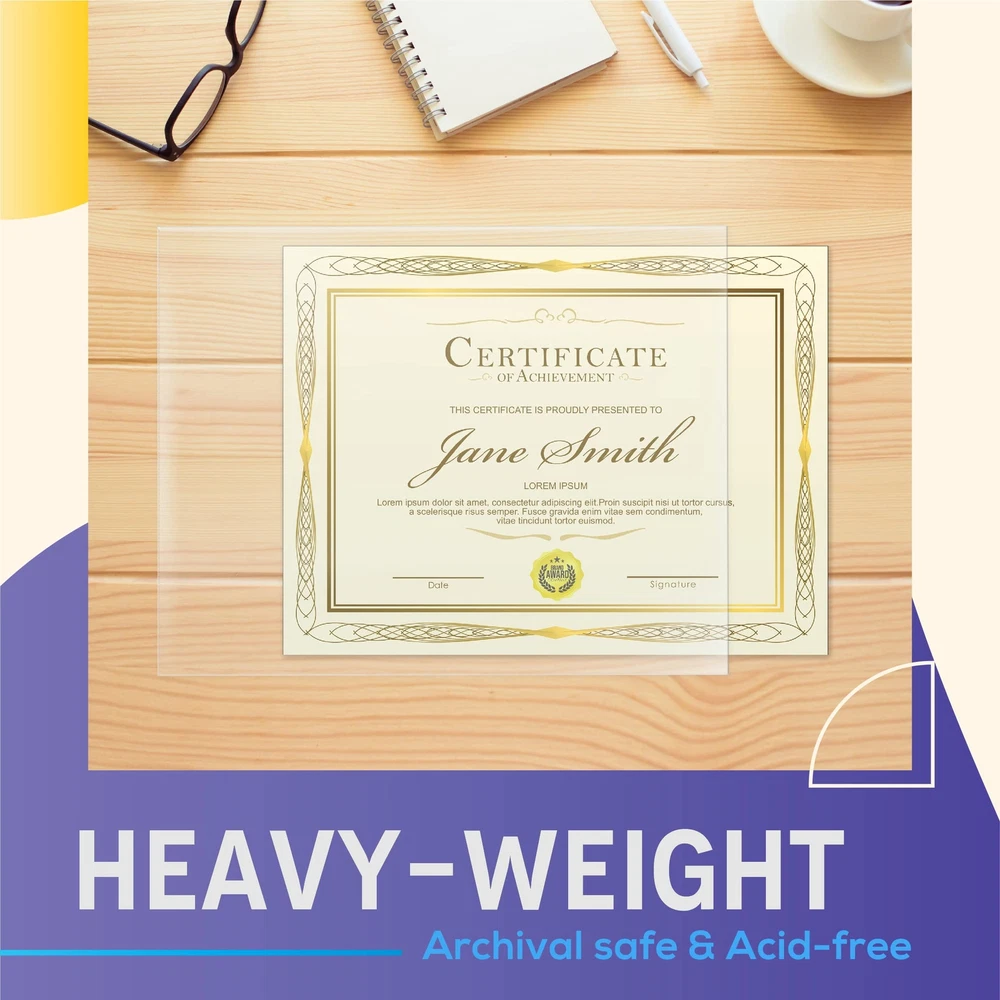 Bulk pack of heavyweight 0.08mm/3.2mil letter size sheet protectors with no side tab and no 3-ring binder holes; each frameless, streamlined sheet protector has a heat-welded side and bottom sea. Top-loading entry and clear view sheets to ensure your documents appear as intended, with no haze or yellowing. Archival safe, acid-free, non-stick and non-glare. Safe non-PVC polypropylene. BULK PACK - Heavyweight (0.08mm/3.2mil) letter size sheet protectors with no holes (no side margin to accommodate 3-ring binders); frameless, streamlined document protectors with heat-welded seams on one side and bottom CLEAR VIEW - Non-hazy, clear view sheets to present your documents in their true colors HEAVYWEIGHT - Thick 0.08mm/3.2mil polypropylene (PP) for utmost protection of your documents TOP-LOADING - Load documents from the top edge SUPERIOR QUALITY - Archival safe and acid-free, non-stick and non-glare