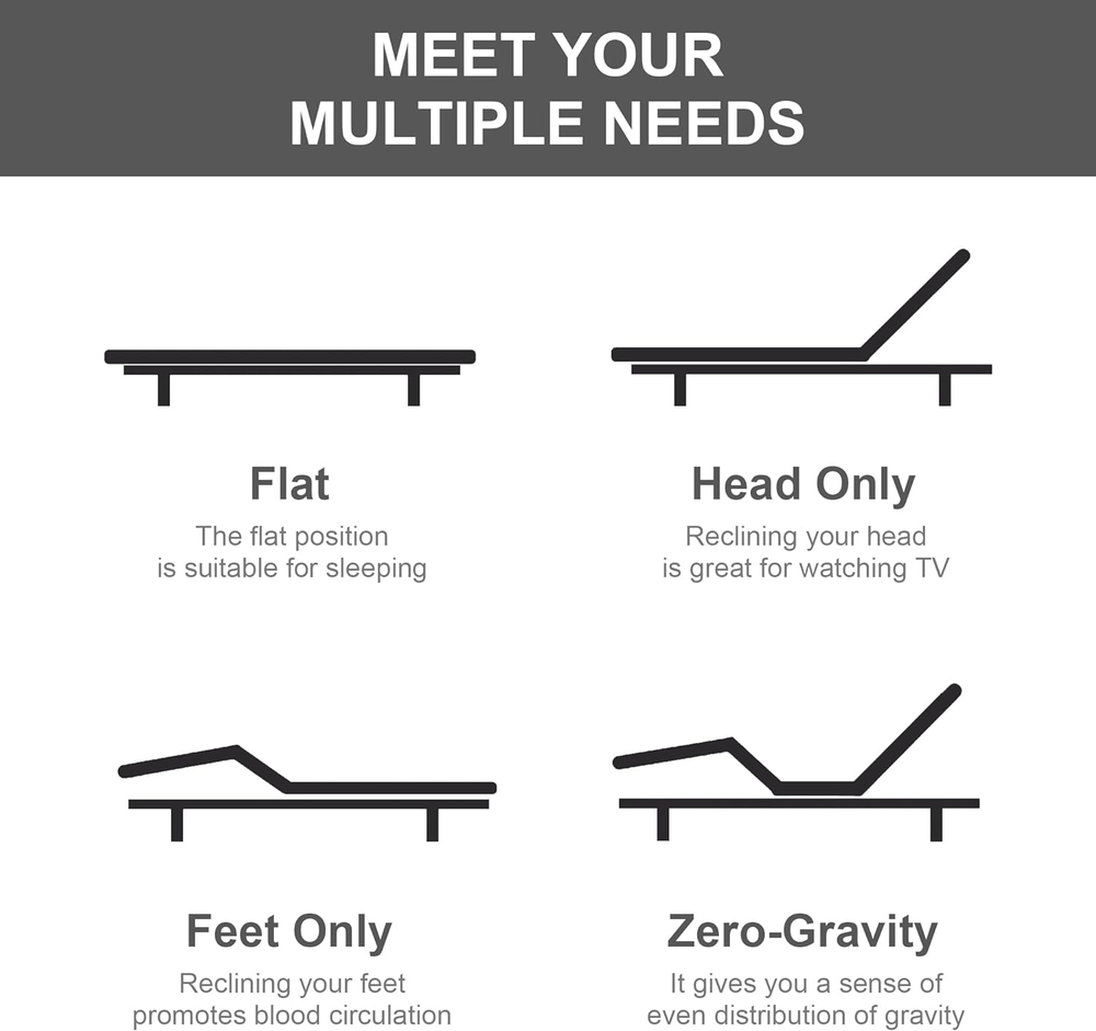 Store New Arrivals Add to Favorite View Feedback Contact GOLDORO Queen Size Adjustable Bed Frame, Electric Bed Base, Wireless Remote Control, Whisper Quiet Durable Motor, Independent Head and Foot Incline, Padded Edge Description Item model number SS006-Q Finish Type Powder Coated Style 12-inch Legs & Padded Edge Furniture Finish Black Assembly Required Yes Color Black Form Factor Queen size adjustable bed frame with 12-inch legs, padded edge, powder-coated finish, and black color Product Dimensions 78.74"L x 59.1"W x 14.76"H Material Engineered Wood, Metal, Plastic, Polyester Compatible With Mattress Size Queen Item Weight 126 pounds Included Components Bed Base, Motor, Slat Size Queen Special Feature Cordless Brand GOLDORO Manufacturer GOLDORO CUSTOMIZABLE COMFORT: Independent head incline from 0 to 60 degrees, foot incline from 0 to 40 degrees. Zero-gravity position to treat yourself with the feeling of weightlessness and release stress after a hard day's work RELIABLE MOTOR: The enhanced motor features a robust aluminum alloy tube, ensuring excellent load capacity and long-term durability. It can lift up to 550 lbs for the head and 350 lbs for the foot. COMPATIBLE WITH VARIOUS MATTRESSES: Complete your optimal bed with the mattress of your choice, this base is compatible with memory foam, gel foam, latex foam, and soft hybrid mattresses BETTER SLEEP QUALITY: Enjoy lifestyle and health benefits with this GOLDORO adjustable bed frame. The bed frame will helps relieve snoring, decrease back pain, reduce swelling, improve heart health and breathing, and alleviate acid reflux Product description ABOUT US We offer the best prices around on high quality products. Our E-store includes media such as books, movies, music and games while offering electronics, toys, sporting apparel, clothing, tools, general home, garden items and more. SHIPPING We are always working hard to ensure your package arrives as soon as possible. Please understand that some factors like weather, high postal traffic, and the performance of shipping companies are outside of our control. RETURNS We offer a 30-Day Return Policy on items which you are not completely satisfied with. You have the option for a full-refund or an exchange of the item. No returns are available on items shipped outside of the USA. PAYMENT We accept PayPal. CONTACT US This page content is yet to come Please ad us to your favorite seller and visit again later Thank You CUSTOMER SATISFACTION We try our very best to make sure every customer is completely satisfied. If there's a problem, message us! We're happy to help. WE ACCEPT Copyright © 2021 AutoDS. | All Rights Reserved
