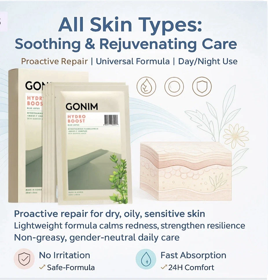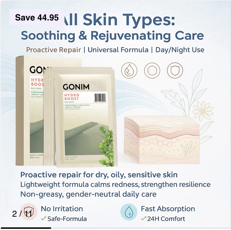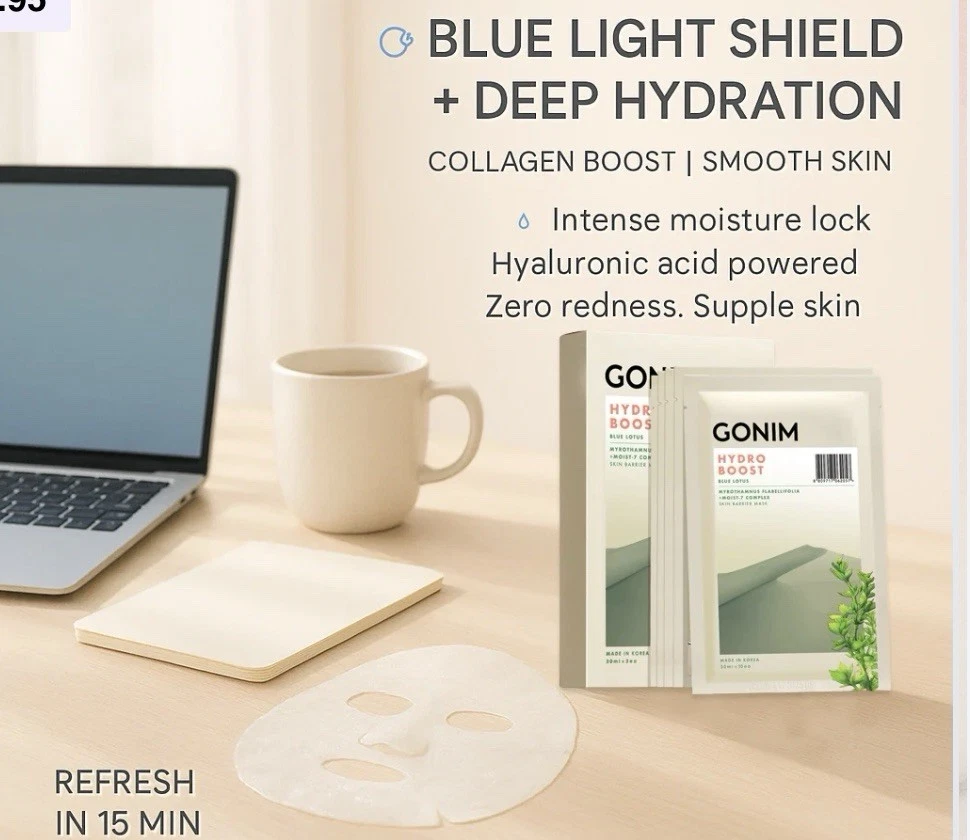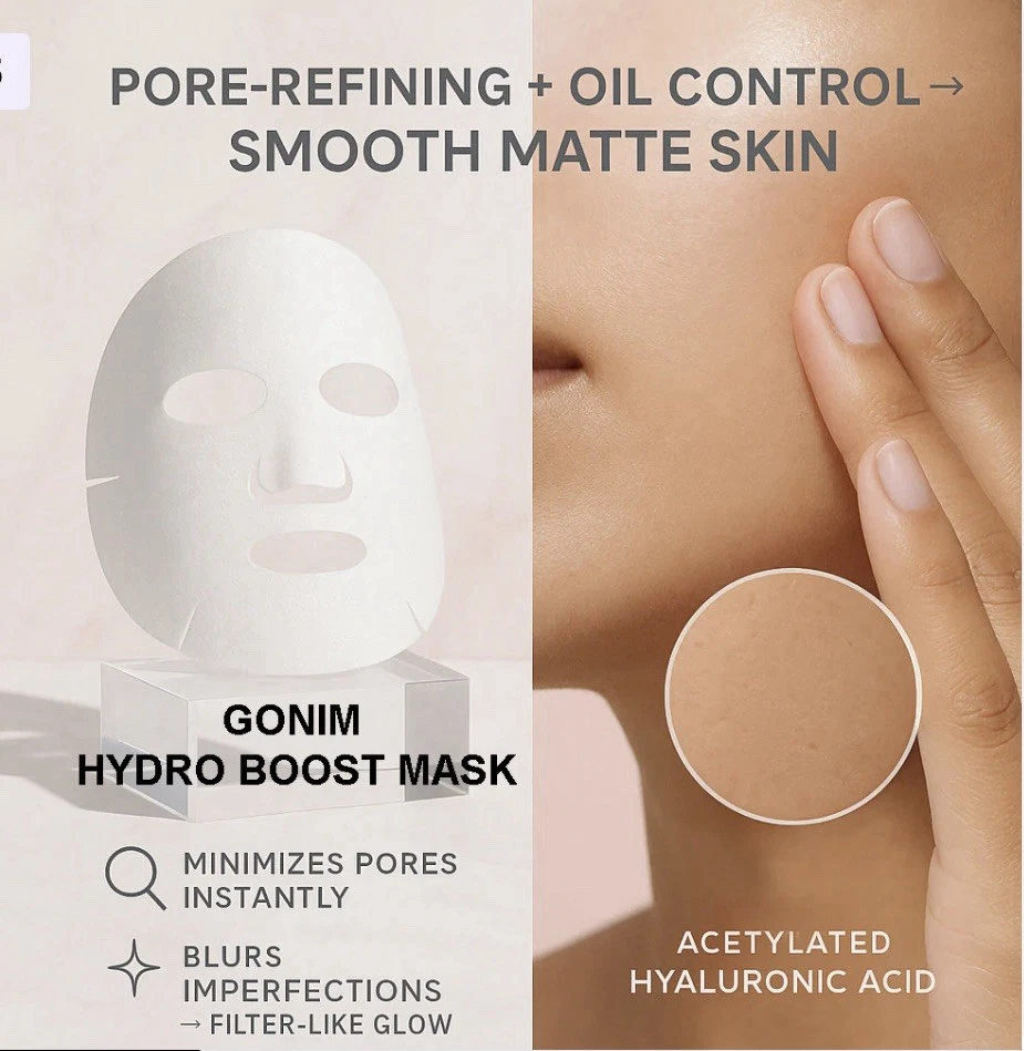 GONIM Face Mask Korean Skin Care with Hyaluronic Acid Serum & Collagen Activatio. 5 individual masks