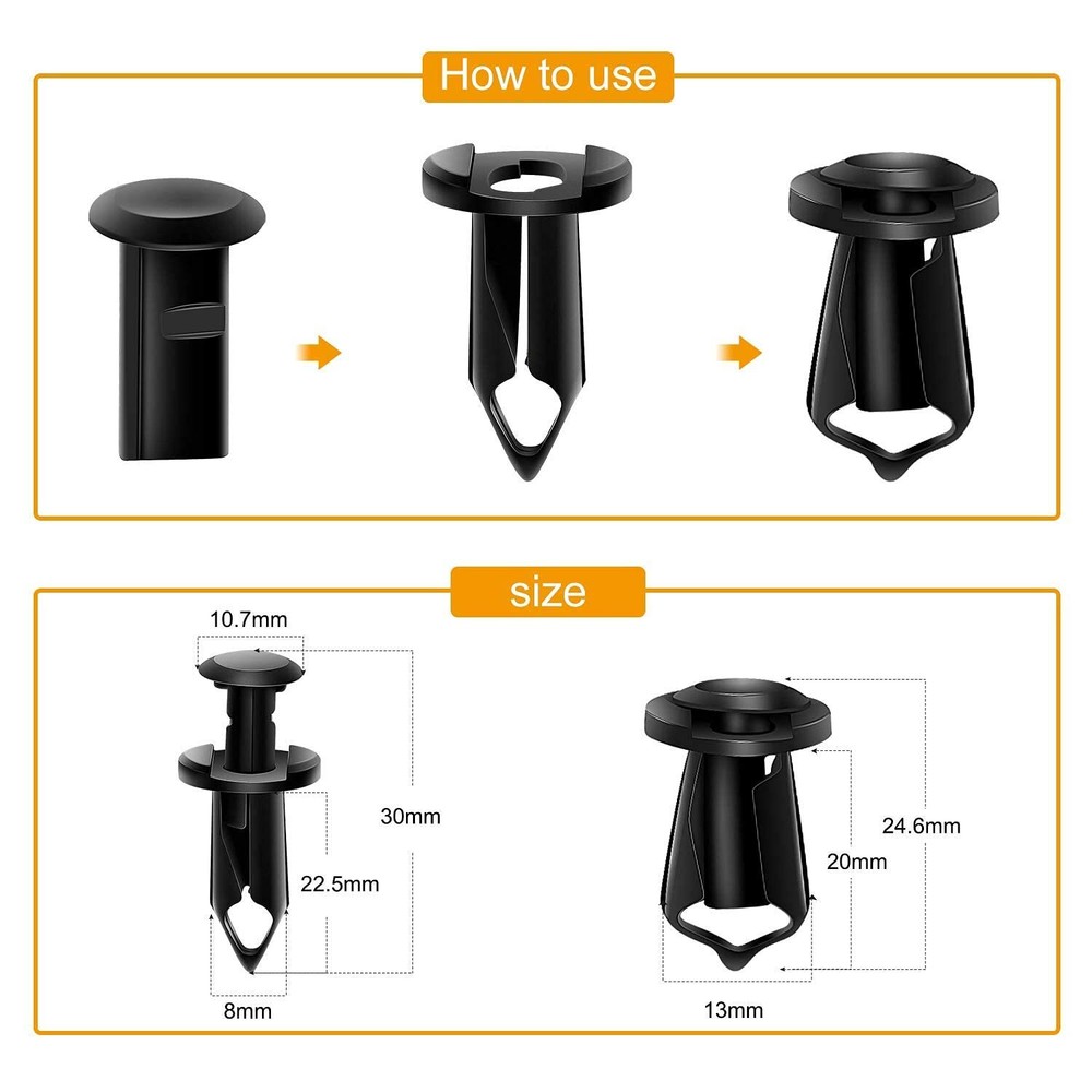 GOOACC GRC-70 35PCS Engine Under Cover Splash Shield Guard Body Bolts Bumper Fender Liner Push Retainer Fastener Rivet Clips , black About this item Brand New Engine Splash Shield Bolts Hardware Kit Fender Bumper Clips Rivets direct replacement and perfect fitment.Fit Type: Universal The extruded U-nuts can be used to replace/fix to the bumper The clips are widely used for radiator yoke trim panel door trim door panel bumper car fender flare side skirt grille wheel well air intake engine cover mud flap and splash guard shield retainers rivet clips replacement Fits Infiniti G35 G37 FX35 FX45 EX35 Nissan 370Z 350Z (see details) Package includes 10pcs Extruded U-nuts - Replace/Fix to the Bumper(CORROSION RESISTANT) 15pcs Body Bolts with Built-in Fender Washer (CORROSION RESISTANT) 10pcs Plastic Push Clips as pictured