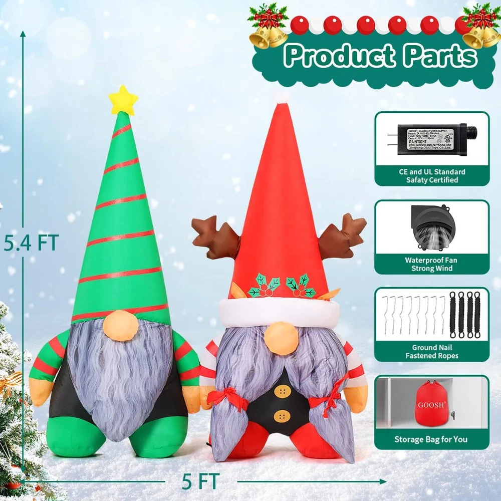 GOOSH 5.4 FT Christmas Inflatable Outdoor Decoration, Blow Up Gnomes Built-in LEDs, Holiday Inflatables for Indoor Outdoor Patio Lawn Birthday Party Xmas Gift 5.4 FT Christmas Gnomes: Elevate your festivities with our Christmas Inflatable Gnomes for Hire – a symbol of pure holiday fun. Outdoor Christmas decorations are more than a decoration – it’s an invitation to embrace the joy of the season like never before. Inflatable gnomes create your unique Christmas experience. Fast Inflate and Safe: Our Inflatable Christmas Gnomes with Waterproof Powerful Blower. Just zip up and plug in, and the Christmas inflatable outdoor decoration will Inflate to full within 1 minute automatically. The CE and UL standard safety-certified adapter with a 10 FT power cord. Easy Setup: Package included ground stakes, securing ropes, storage bags. Just attach ropes to stake and secure to the ground so that the Christmas inflatables will stand firmly. Get ready to witness the magic unfold effortlessly! Unforgettable Festivities: Whether you’re hosting a jolly office party, a cheerful community fair, or a spirited family gathering. Inflatable Christmas yard decorations shines indoors or outdoors, instantly transforming any space into a winter wonderland of laughter. Merry Capture Times: From selfies with Gnomes to family portraits full of laughter, everyone will want a memory with those delightful Christmas inflatable outdoor decoration gnomes. Capture moments that will warm your heart long after the holiday season. Why choose GOOSH Inflatables? PREMIUM QUALITY -- CE and UL standard certified adapter. Equipped with a durable build-in-blower, just need to plug it in and it can be blown up in a short time. PERFECT INFLATABLE COSTUME-- Adorable shape, which is a perfect inflatable decoration for home and outdoor. Enjoy time with your family and friends GOOSH has been committed to producing better inflatable products for decades. We strive for your shopping experience Shipping We offer FREE shipping on all orders! We ship within Three business days of payment, usually sooner. We use a selection of shipping services such as UPS, FedEx, USPS etc. We only ship to the lower 48 states, no APO/FPO addresses or PO Boxes allowed. Local pickups and combined shipping options are not provided at this time. Return You can return a product for up to 30 days from the date you purchased it. Any product you return must be in the same condition you received it and in the original packaging. Please keep the receipt. Payment We accept payment by any of the following methods: PayPal Please pay as soon as possible after winning an auction, as that will allow us to post your item to you sooner! Feedback Customer satisfaction is very important to us. If you have any problem with your order, please contact us and we will do our best to make you satisfied. Contact Us If you have any queries, please contact us via ebay. We usually respond within 24 hours on weekdays. Please visit our eBay store to check out other items for sale! Thank you for shopping at our store.