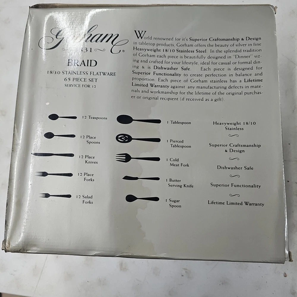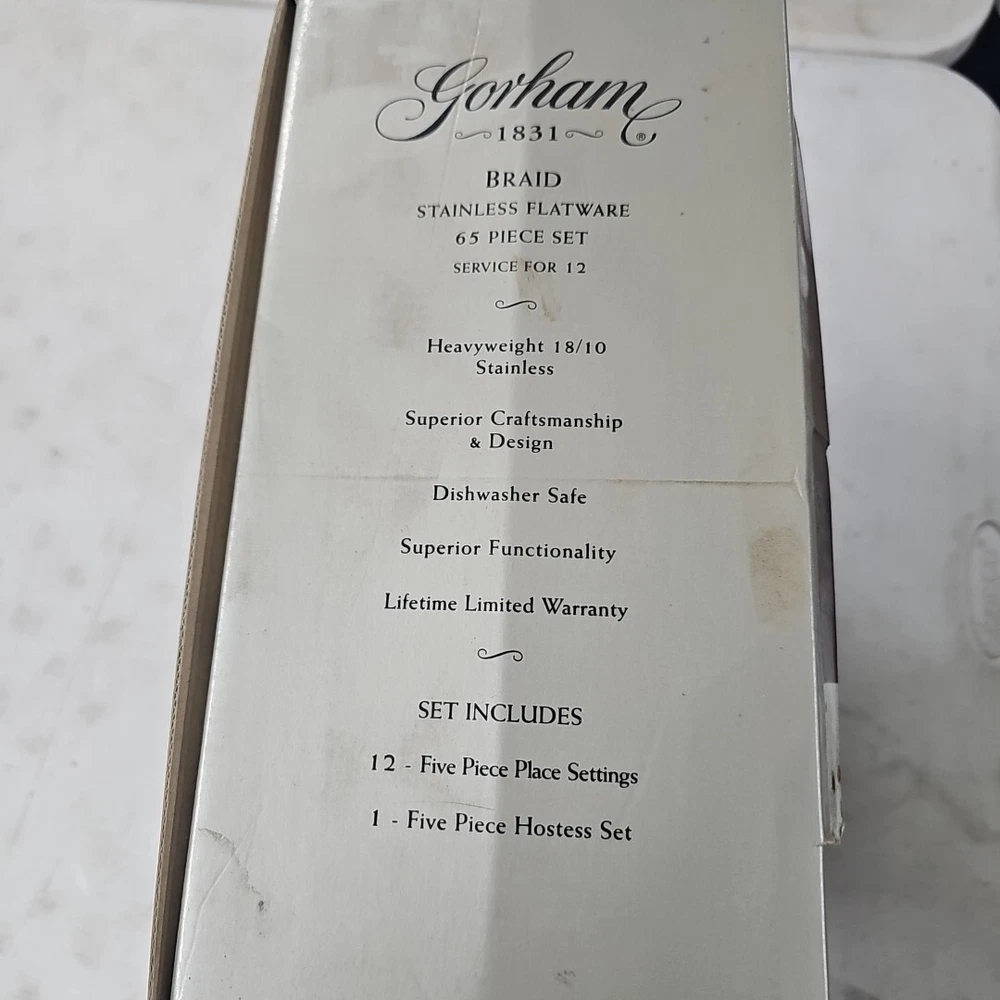 GORHAM 1831 BRAID STAINLESS 65 PIECE DINNER TABLE SET Brand New