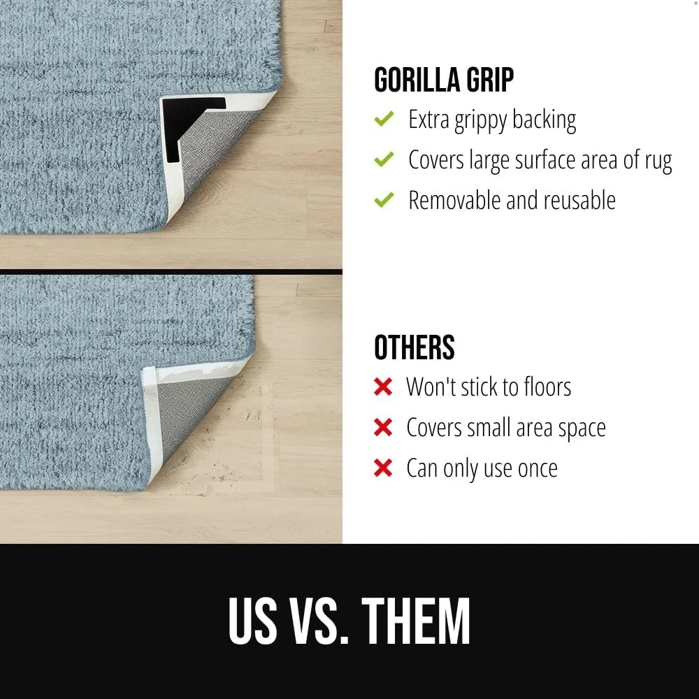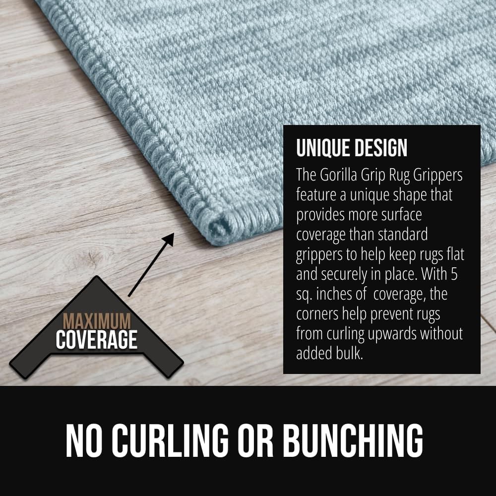 Free eBay listing template designed by dewiso.com GORILLA GRIP Extra Wide Dual Sided Rug Gripper Pads, Holds Carpet in Place on Hardwood Floors and Tile, Removable Reusable Sticky Corner Grippers, Universal Fit Floor Pad for Under Area Rugs, 4 Pack FREE AND FAST SHIPPING! About this item EXTRA WIDE DUAL SIDED GRIP FOR MAXIMUM HOLD: powerful dual-sided backing grips both your rug and floor for a strong, reliable hold; each rug gripper covers 5 sq. inches of flooring and covers more rug area than most standard rug grippers; helps prevent shifting and bunching on floors UNIQUE LOW PROFILE DESIGN KEEPS RUGS FLAT: rug gripper is uniquely shaped and has a low-profile design to help keep rug corners and edges flat against the floor; rug gripper helps prevent unsightly curling to maintain a smooth, clean look, even in high traffic or pet areas REMOVABLE AND REUSABLE: REMOVABLE AND REUSABLE: rug grippers are removable and reusable and can be used time and time again; to reuse, simply wipe with a damp cloth and reapply to floor when dry UNIVERSAL FIT FOR MOST RUGS: the rug gripper is compatible with rug corners and straight edges, making them a great fit for a wide variety of rug styles and sizes TOOL FREE INSTALLATION: no tools, nails, or extra supplies needed, just peel and stick to apply; this rug gripper for hard wood floors is perfect to use in all homes and is long lasting; grippers measure 5 inches x 7 inches Product We offer a 30-Day Return Policy on items which you are not completely satisfied with. You have the option for a full-refund or an exchange of the item. No returns are available on items shipped outside of the US . Shipping We offer Free Shipping to the US and ship within 2 business days of payment, usually sooner. We use UPS express shipping. That's why your products are usually delivered within 3 days . Contact We try our very best to make sure every customer is completely satisfied. If there's a problem , message us! We're happy to help. 24/7 live chat available.