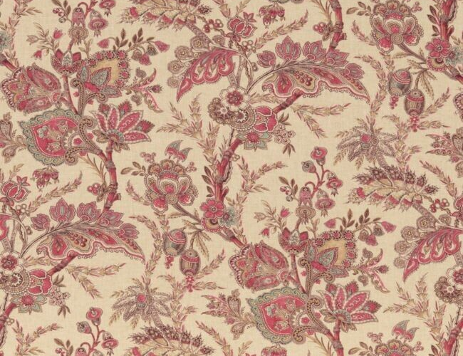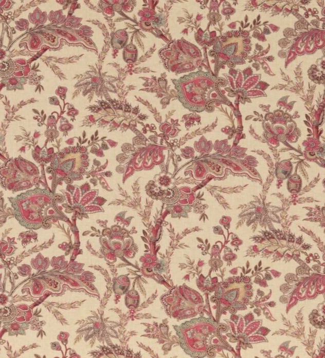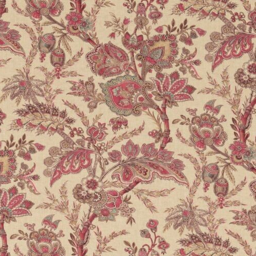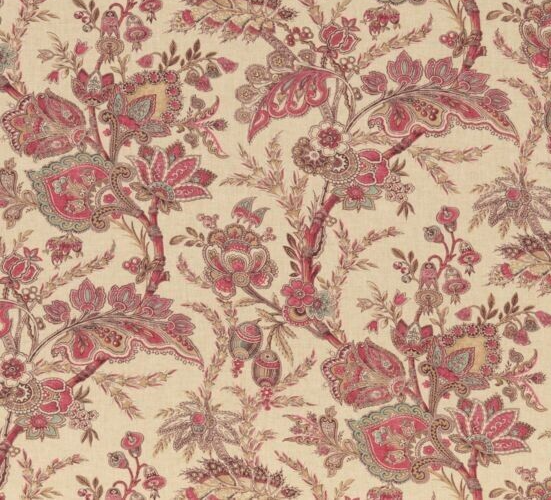 GP & J BAKER FABRIC FROM THE COROMANDEL SMALL COLLECTION DESIGN IS CALLED JEWEL INDIENNE RED AND BLUE COLOURWAY PATTERN REPEAT 69 CM HALF DROP YOU ARE BUYING A PIECE OF FABRIC APPROXIMATELY 8.5 METRES IN LENGTH 1.38 METRES WIDE. 82% VISCOSE 18% LINEN PLEASE NOTE THE FABRIC WILL COME FOLDED