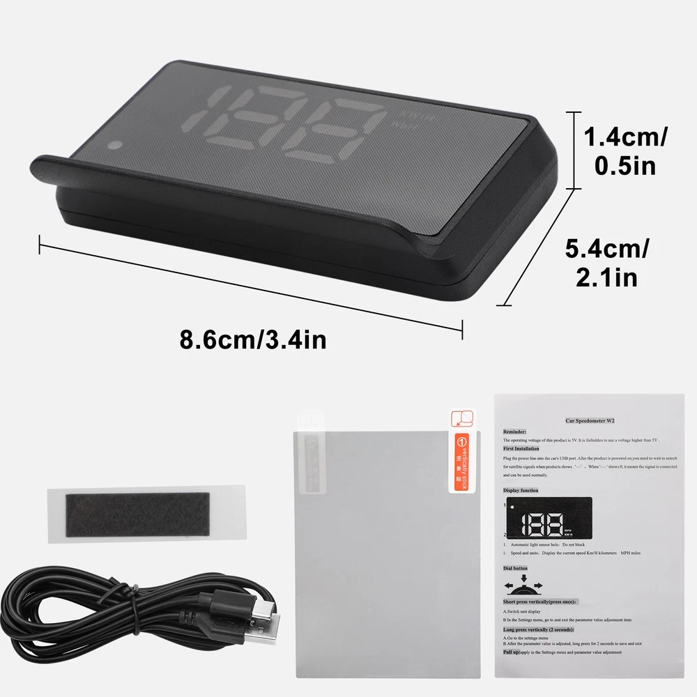 Product Description Monitor your speed accurately with the W2 GPS Digital Car Speedometer HUD. This GPS head-up display shows real-time speed in KM/H or MPH for cars,It features overspeed alarms, automatic brightness adjustment, and speed calibration to match your vehicle. Plug-and-play USB power makes installation easy and hassle-free, providing reliable car speed monitoring on every drive. Reminder: The operating voltage of this product is 5V. It is forbidden to use a voltage higher than 5V . Product Feature π Accurate GPS Speed Display: Real-time speed shown in KM/H or MPH for cars, trucks. π Adjustable Overspeed Alarms: Three levels (150/180/199 KM/H default) help prevent speeding fines. π Automatic & Manual Brightness: Built-in light sensor or 11-level manual adjustment for clear visibility. π Customizable Calibration: Fine-tune speed display (50β150%) to match your vehicleβs dashboard. π Plug-and-Play USB: Easy installation without modification, ideal GPS HUD speedometer. Tips: If the product stops working, it might have lost its signal. Try operating it outdoors, as indoor or underground garages may affect signal reception. Product Specification Input voltage DC 5V Universal Compatible with all cars Color Black Material ABS+PC Unit of Measure Mph, Km/h Type Speedometer Display Type Digital Features Head-up Display, Alarm Signal GPS satellite-based Key Features Automatic Light Sensor Key Features 1 Speed Unit Switch Overspeed Alarms Level 1 150 KM/H (Default) Overspeed Alarms Level 2 180 KM/H Overspeed Alarms Level 3 199 KM/H Brightness Adjustment Auto (0) or Manual (1β11 levels) Package Included π1 x Car Speedometer W2 π 1 x Projection Stickers π 1 x USB Power Cable π 1 x Anti-slip rubber pad π 1 x User Vanual Location Descriptions To improve your buying experience and ensure fast delivery, Your order will be shipped from the warehouse located in either new jersey or california that is closest to your address. If you have any questions, Please contact us. Thank you for your support ! On Sep 25, 2025 at 01:50:43 PDT, seller added the following information: On Sep 25, 2025 at 04:22:01 PDT, seller added the following information: On Oct 10, 2025 at 00:22:51 PDT, seller added the following information:
