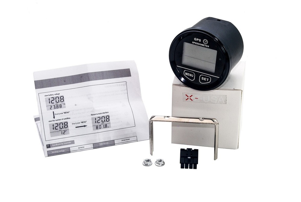 Features: • Displays GPS Speed, Odometer, Voltage, and Time • Speed units: MPH, KMH, or Nautical MPH • Max speed recall and re-settable trip meter • Adjustable high/low speed alerts with red LED flasher • Internal GPS antenna with automatic UTC sync or manual timezone setting • Speed refresh rate: 0.2 seconds • EEPROM memory for automatic data storage • Dustproof & Waterproof – IP65 rated • Ultra-low power consumption: 6 μA Multi-Voltage Compatibility: • Works with both 12V and 24V systems • Ideal for cars, motorcycles, ATVs/UTVs, boats, golf carts, and more Package Includes: • GPS Speedometer Gauge • Installation instructions • Back-lit digital display for night visibility