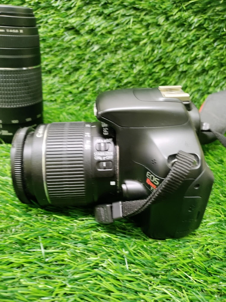 Tested and works. The product is a Canon EOS Rebel T3 digital SLR camera in black color. It has a maximum resolution of 18.0 MP and comes with two lenses: 18-55mm and 75-300mm. This camera model is identified as CANON EOS REBEL T3. Please check pictures for condition. We do our best to assure that you receive your order correctly and promptly but sometimes we can make an honest mistake, please contact us directly if you are not satisfied with your order for any reason. If your order is not as described we will cover all the return shipping costs and issue a prompt refund once it is receive. All items must be sent back in their original condition with all parts or pieces along with the original packaging. If any order is sent back and is as described and there is nothing wrong with it, not in the original packaging or missing parts or pieces, you will be responsible to pay the return shipping costs and there will be a 35% restocking fee to help recoup some of the original shipping and handling costs, Ebay and Paypal fees no exceptions