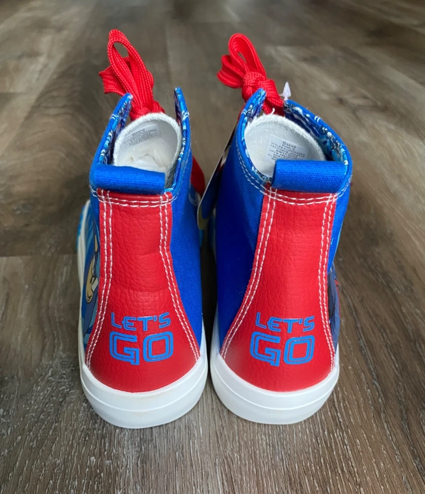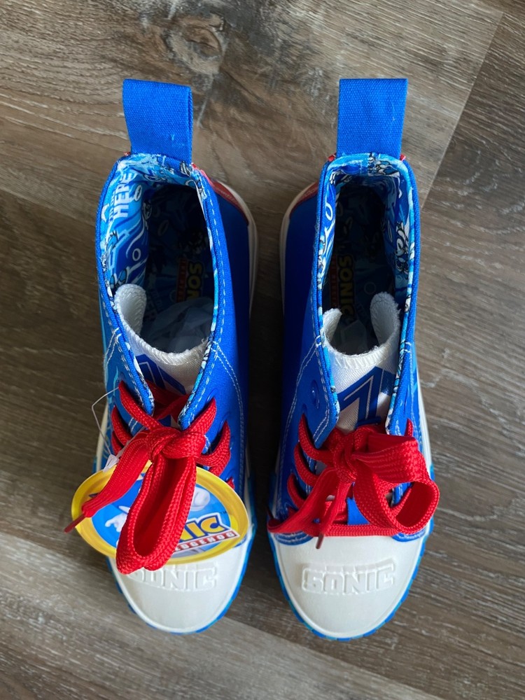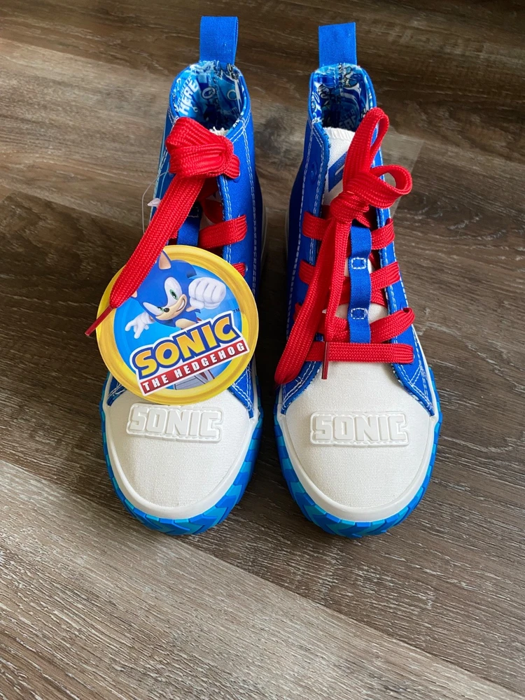 GROUND UP~New~Sonic The Hedgehog Boys High Top Sneakers Shoes~Size 3~NEW IN BOX *Style: ECSO3022KO *Size: Boy's size 3 *Color: Blue, light blue, white, red, yellow, black, gray, & beige *Closure: Lace up *Condition: excellent, new condition. Please review attached pictures of the item. DOES have the original box. *We have a smoke-free home.