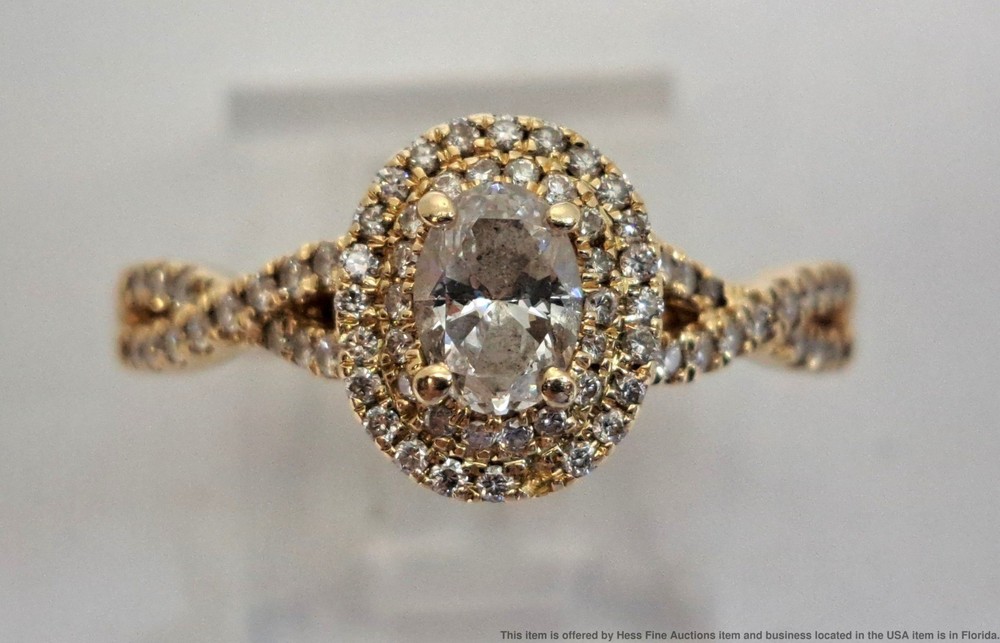 GSI .49ct Oval Center .99ctw Fine Natural Diamond 14k Gold Engagement Ring GSI .49ct Oval Center .99ctw Fine Natural Diamond 14k Gold Engagement Ring Click images to enlarge Description Described & Photographed By: Mike NFEDD 71201 Title: GSI .49ct Oval Center .99ctw Fine Natural Diamond 14k Gold Engagement Ring Description: Beautiful! Make it yours today. Happy bidding! Here are the specifications Please note; all stones graded, measured & calculated while mounted Type of Jewelry: Ring Gemstones: Diamond Approx. Measurement or Weight of Stones: Oval cut Diamond totaling .49ctw Side stones totaling approx. .50ctw Clarity: SI2 Color: F H-I Mounting Metal: 14k Yellow Gold Approx. Size or Length: 8.5 Stamps or Factory Markings: 14k, hallmarks, Celebration Total Weight of Item: 4.7 grams Condition: Gold shows very minor toning or wear. All stones are well secure and intact. Please note it appears one of the Diamonds is missing. Estimated size of package: 7.5in X 5.5in X 3.5in Estimated total weight of package: 8 oz Please Note: If the winning bidder would like to arrange to pick up their item at our store then please notify us by email & we will make the appropriate shipping adjustments. Condition: Pre-owned - Excellent Condition Notes: Described & Photographed By: Mike NFEDD 71201 Title: GSI .49ct Oval Center .99ctw Fine Natural Diamond 14k Gold Engagement Ring Description: Beautiful! Make it yours today. Happy bidding! Here are the specifications Please note; all stones graded, measured & calculated while mounted Type of Jewelry: Ring Gemstones: Diamond Approx. Measurement or Weight of Stones: Oval cut Diamond totaling .49ctw Side stones totaling approx. .50ctw Clarity: SI2 Color: F H-I Mounting Metal: 14k Yellow Gold Approx. Size or Length: 8.5 Stamps or Factory Markings: 14k, hallmarks, Celebration Total Weight of Item: 4.7 grams Condition: Gold shows very minor toning or wear. All stones are well secure and intact. Please note it appears one of the Diamonds is missing. Estimated size of package: 7.5in X 5.5in X 3.5in Estimated total weight of package: 8 oz Please Note: If the winning bidder would like to arrange to pick up their item at our store then please notify us by email & we will make the appropriate shipping adjustments. Payment Paypal Shipping Shipping Options: Domestic shipping: Weight based Shipping Charges. Domestic Carriers are: Ups Second Day Air, Ups Next Day Air International shipping: Weight based Shipping Charges. International Carriers are: Ups Standard Canada, Ups Worldwide Expedited I will ship to: United States, Worldwide Weight: 8 oz. Shipping and Handling: Please check eBay's Shipping & Payment tab Customer Service Policy: Please note in bidding or buying this auction you are entering into a binding contract. In bidding or buying you are agreeing to all policies stated below and comply with Florida State laws. Sales Tax applies to all Florida sales unless you have a valid dealers license. Legal Shipping High value items require restricted delivery with only the addressee being able to sign for it. * Shipping is calculated by eBay and shown in the auction. Legal Jurisdiction. HessFineAuctions is a division of Hess Fine Art, and is registered in Pinellas County, FL, USA. It is agreed that all parties will abide by the laws of the State of Florida in all matters relating to this agreement. And that in the case of any dispute, the legal jurisdiction of resolution shall be Pinellas County, Florida. The buyer acknowledges that any items not returned within 30 days of receipt of the refund will be deemed appropriated by the buyer and buyer also acknowledges their intent to deprive from seller, either temporarily or permanently, the right to the property or the benefit from the property. Resale certificates must match buyer name or company and address * The auctions contain only what is described. Do not assume something comes with a used item if it is not stated in the auction verbiage. Many items will be marked with serial numbers or identifying numbers items may not be accepted for return if these numbers are not present. * Photographs often disclose condition far better than verbiage as many people have different ideas on what terms may mean. * If an identifying mark, inclusion or defect is visible in the images it is considered DISCLOSED to the buyer. * Gold items have been tested with a Kee gold tester M-509GM and tested as stated in the auction. * All Items are shipped insured. If an item has arrived damaged we will require images and a damage affidavit. CUSTOMS AND INTERNATIONAL BIDDER POLICIES International bidders - you are agreeing to the following when you place a bid with us: * If your total purchase including shipping exceeds $200.00 US and you pay with a credit card then your only delivery option is UPS signature delivery. This is because credit cards require both a signature and tracking. * If you pay with PayPal and the total price including shipping is less than $750.00 US then we can ship USPS to most countries. Please contact us with eBay?s message system before you pay for an amended invoice. * The following applies if you are shipping to or from these countries. CANADA, Australia, Belgium, Brazil, Croatia, Denmark, France Germany, Great Britain and Northern Ireland, Israel, Netherlands New Zealand Spain and Switzerland, Estonia, Finland, Gibraltar, Hungary, Italy, Latvia, Lithuania, Luxembourg, Malaysia, Malta, Portugal, and Singapore. We will be able to offer you USPS International shipping if you are paying with PayPal and the item and shipping are less than $750.00 US. We may be able to ship 1st Class USPS International if you are shipping to or from the countries listed above. * If you wish your item sent to a colleague with a US address we are of course willing to do so but the address must be verified with PayPal Credit card company and in the eBay invoice. * We declare all items for the winning bid amount. * It is common for countries to char