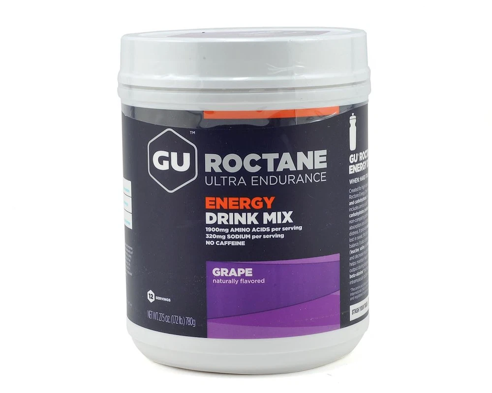 GU Roctane Energy Drink Mix Description: Roctane Energy Drink Mix is an all-in-one solution to energy and hydration with key nutrients like electrolytes and branched-chain amino acids to keep you feeling strong and energized. The precise blend of complex and simple carbohydrates will fuel you up, so you feel good, longer. Drink one serving every hour to stay energized and hydrated while exercising. Features: Carbohydrates (maltodextrin and fructose) that use non-competing pathways which can help maximize absorption, increase carbohydrate utilization, and diminish stomach distress, so you get energy that kicks in quickly and stays with you Sodium, the primary electrolyte lost in sweat that aids in hydration by maintaining fluid balance Branched-chain amino acids (L-Leucine, L-Valine, and L-Isoleucine) which may reduce mental fatigue and decrease muscle damage while jump-starting recovery Taurine can help maintain heart contractility and improve cardiac output during long exercise sessions†Beta-alanine can help promote formation of the intramuscular buffer carnosine, which can help delay the onset of fatigue during high-intensity efforts. Specifications: Flavor: Grape Intended Use: Intra-Workout Caffeine: - Dietary Focus: Gluten Free, Vegan Nutrition Facts: About Us | View Store