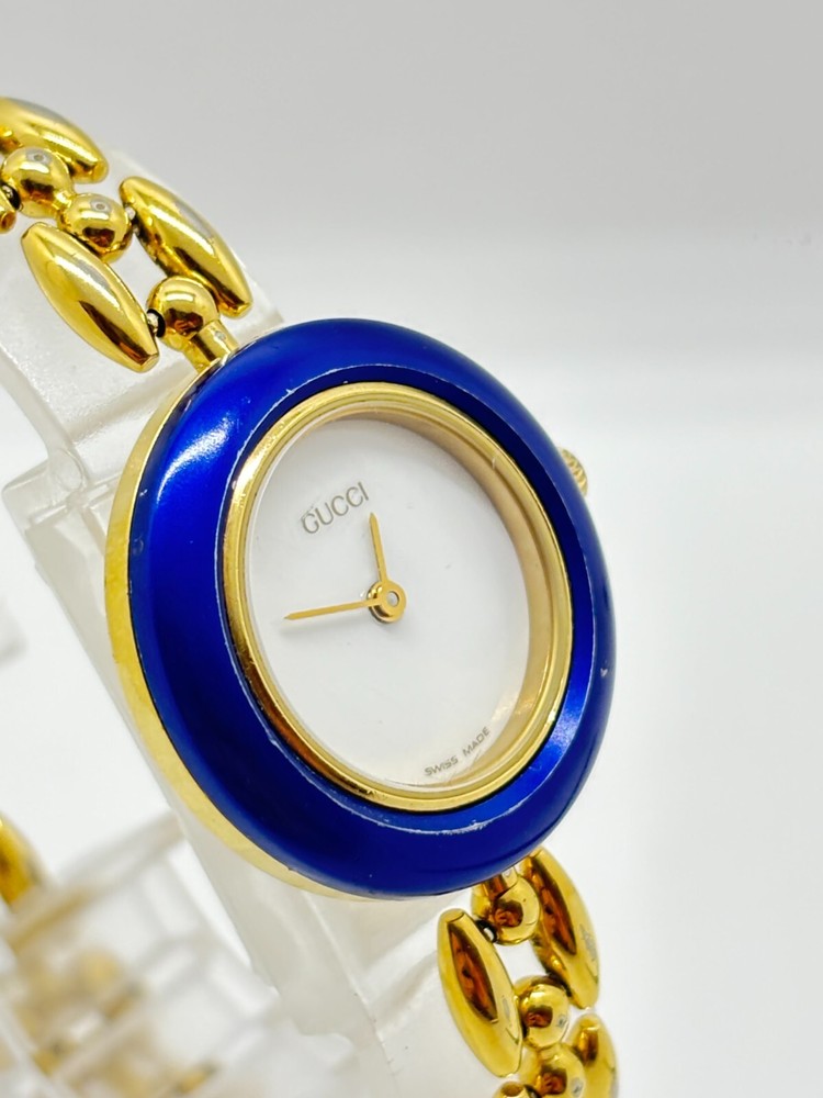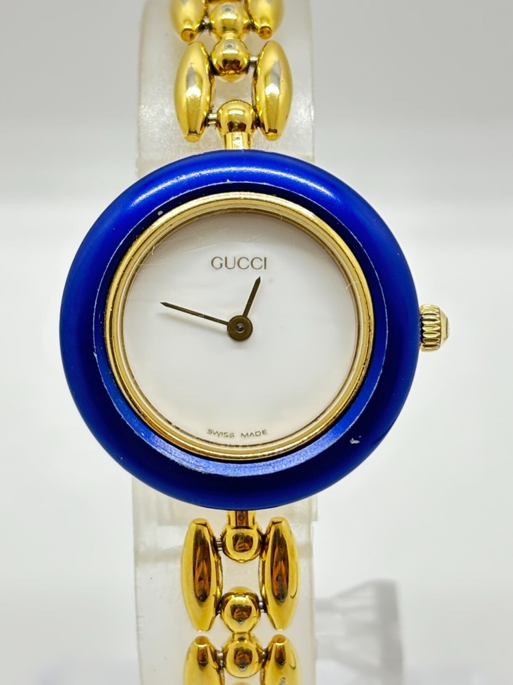 $ 818.4GUCCI 11/12 Gold Bezel White Dial Watch For Parts Repair