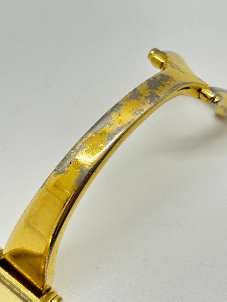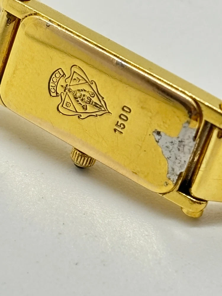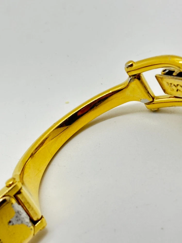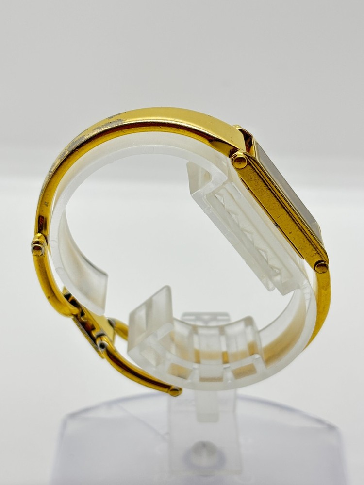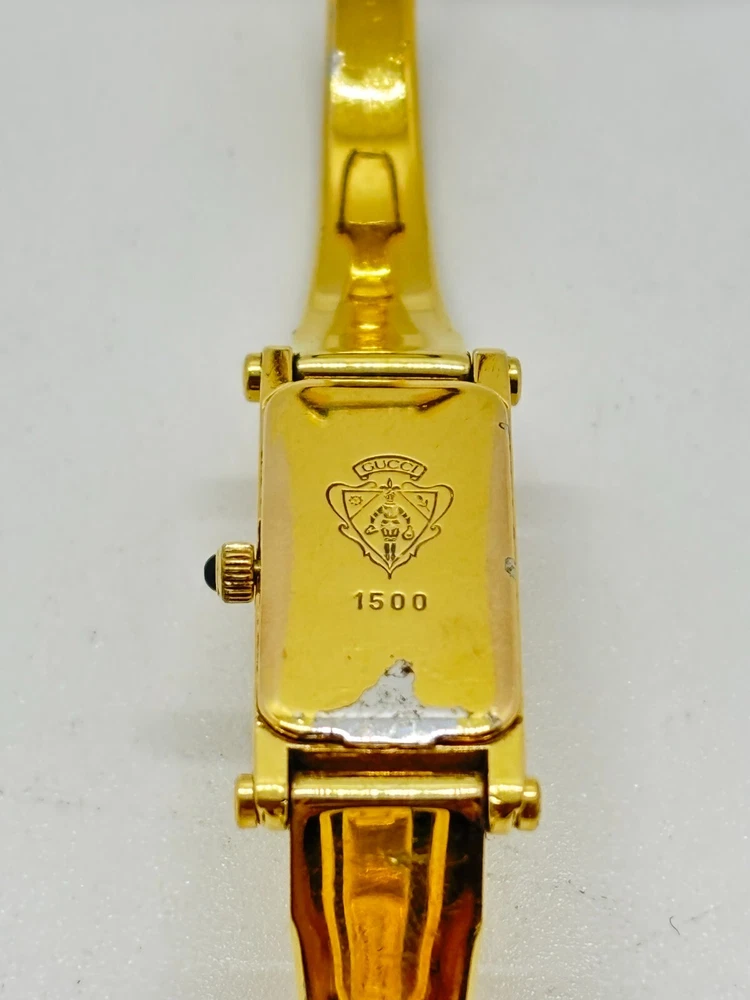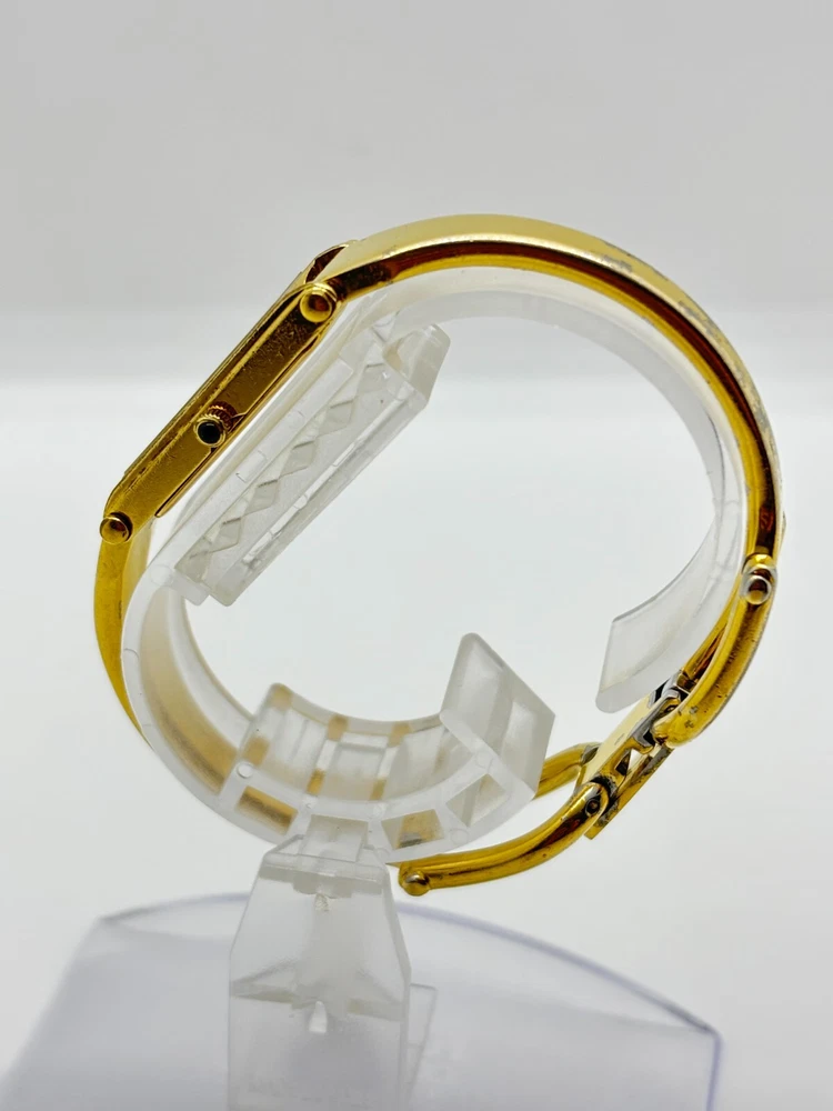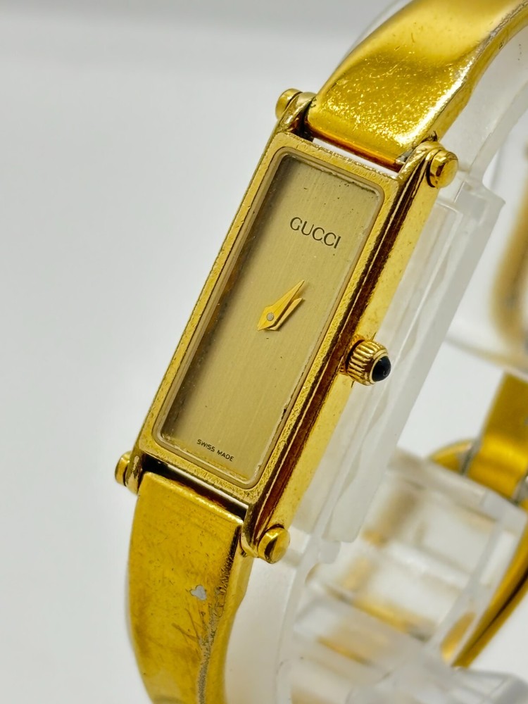 This watch is absolutely stunning—the gold and black dial gives it such a luxurious vibe! Even with some wear, it still looks elegant and works perfectly. The bangle design is unique and fits comfortably. Shipping was fast, and the seller was transparent about the condition. A great find for anyone who loves vintage Gucci pieces!