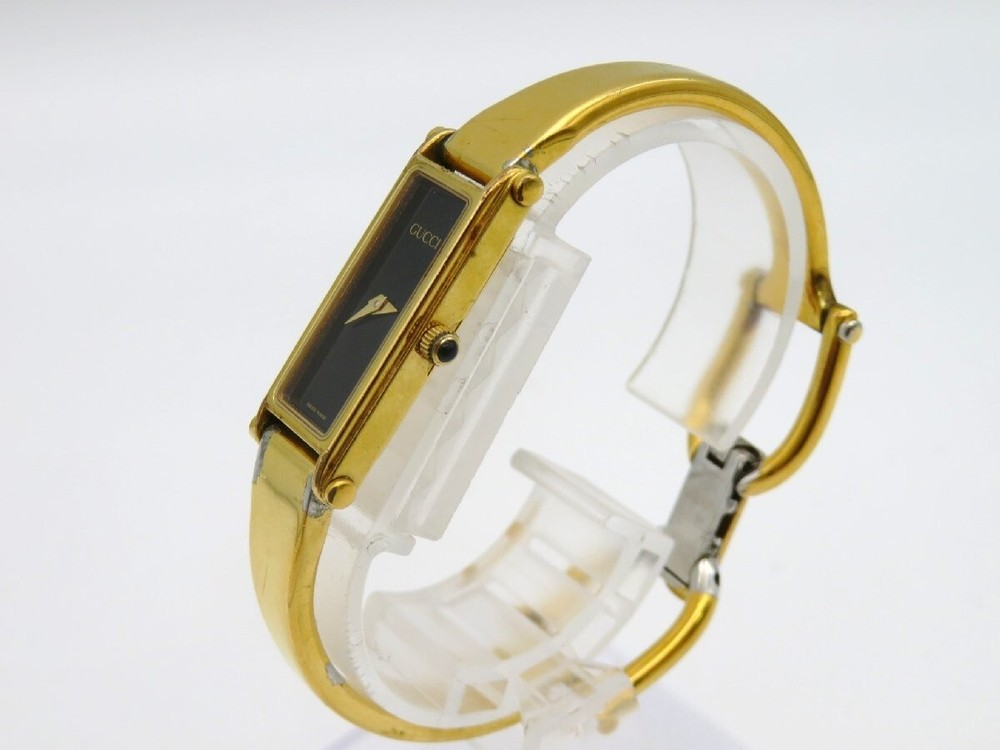 [ Exc+5 w/Box ] GUCCI 9000L Black Dial 11P Diamond Men's Watch Used Working