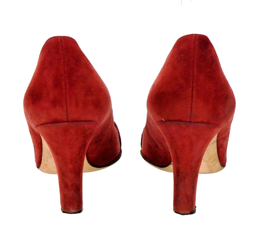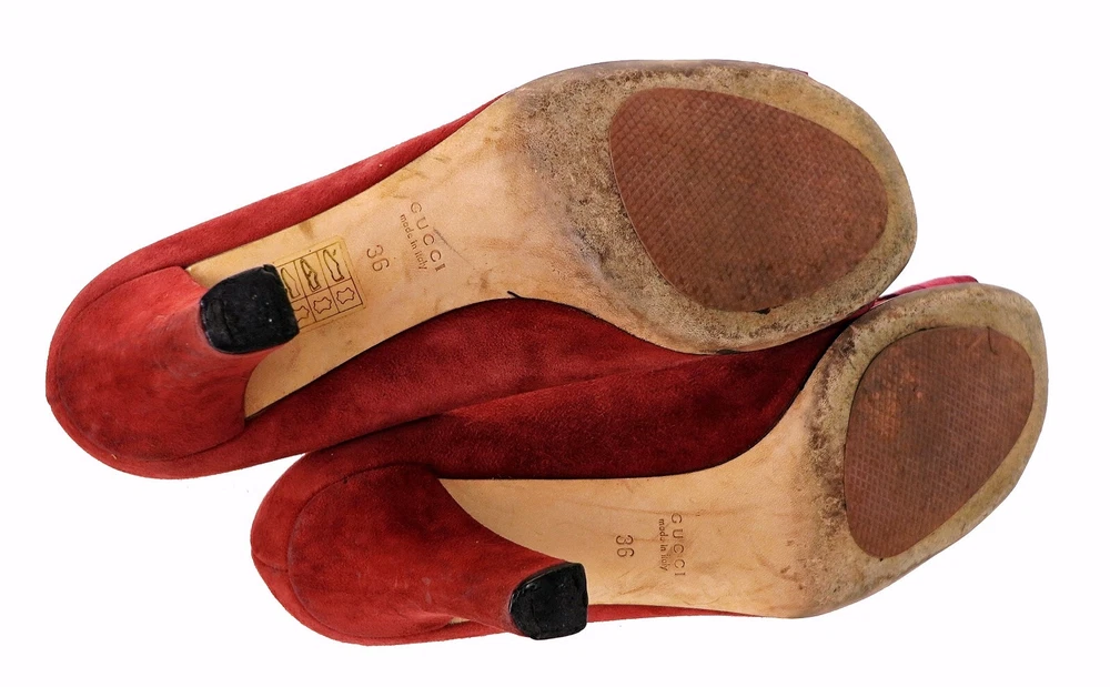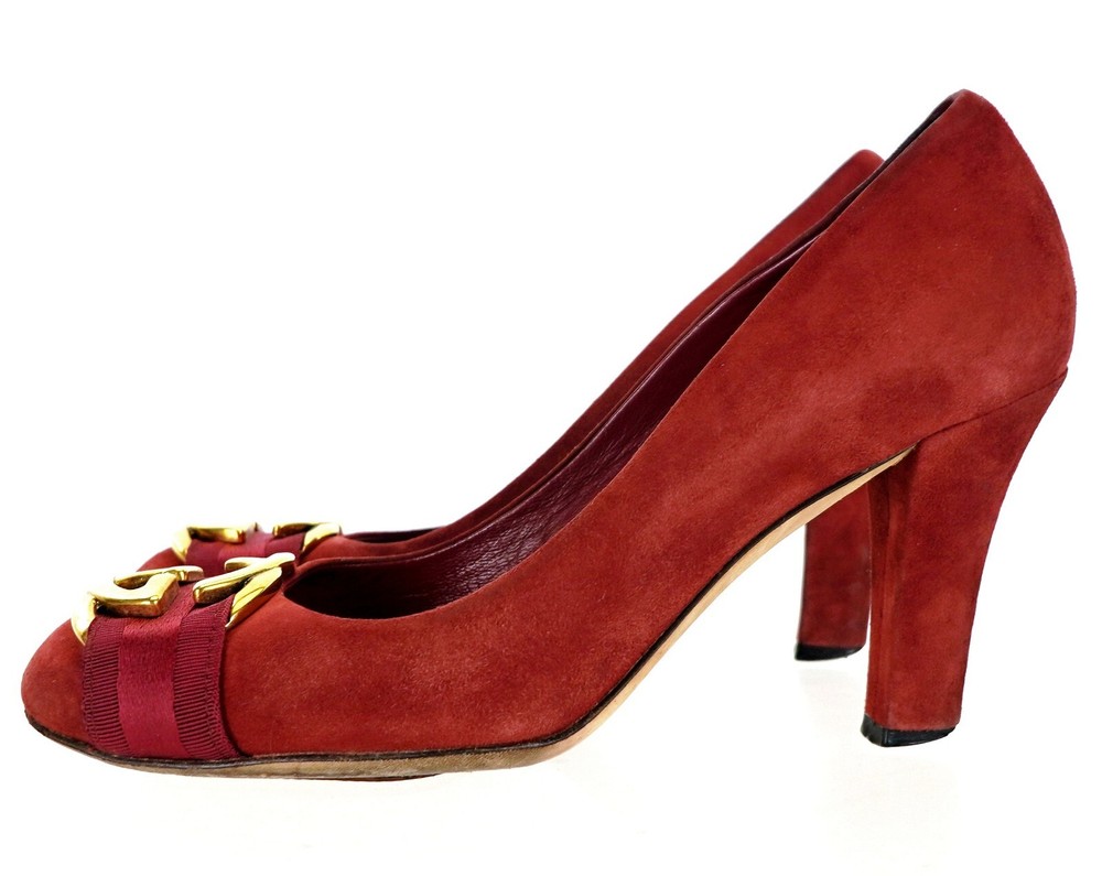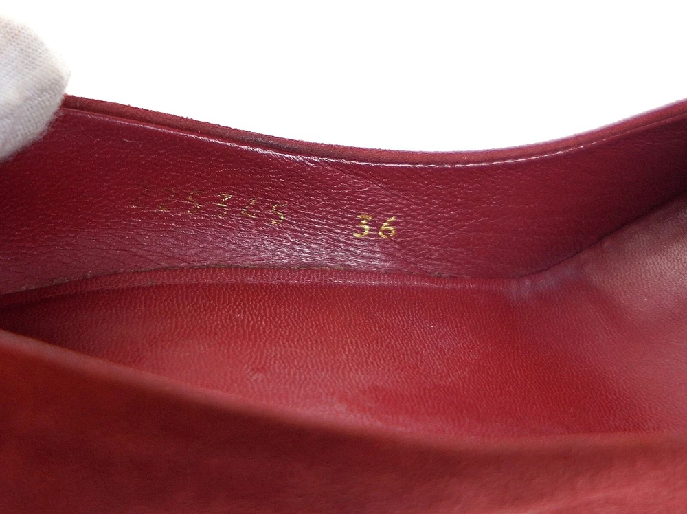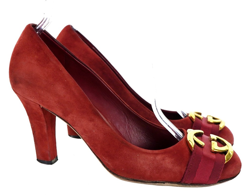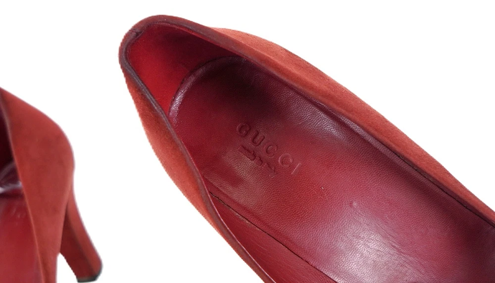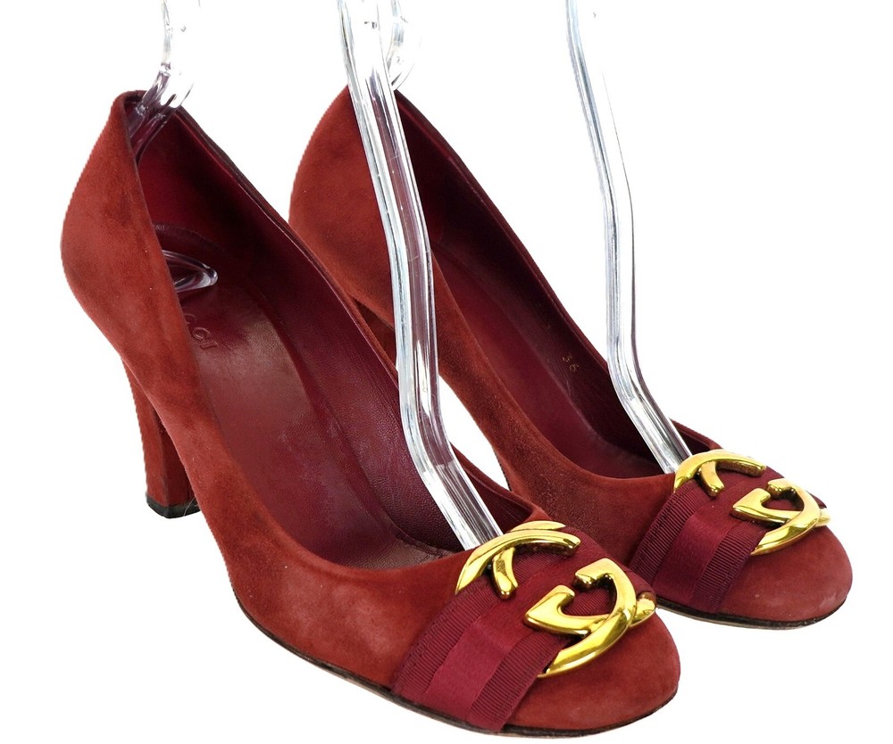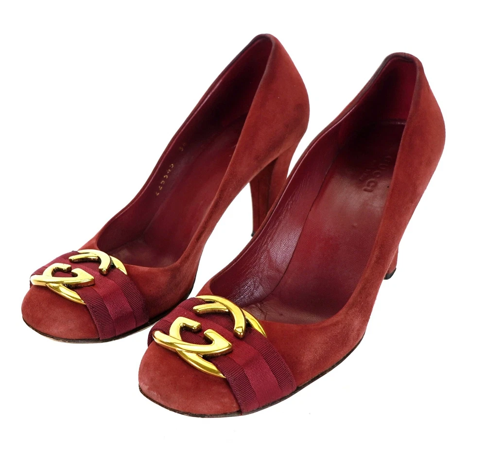 GUCCI 225345 Gold GG Red Suede Leather Heels Shoes Italy EU 36 US 6