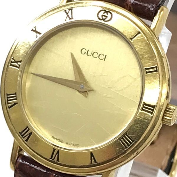 [Exc+3] GUCCI 3000.2.L Gold Brown Dial Quartz Ladies Watch Used Working