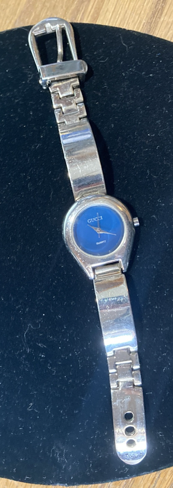 Elevate your style with this luxurious Gucci 6700L wristwatch. Designed for women, this round watch features a silver stainless steel case and band with a beautiful blue analog dial. The quartz movement ensures accurate timekeeping, while the 17.5cm band width provides a comfortable fit. This watch is perfect for any occasion, from casual outings to formal events. With its sleek design and premium quality, it is a must-have accessory for any fashion-forward individual. Add this Gucci 6700L watch to your collection today and experience the ultimate in luxury and sophistication.