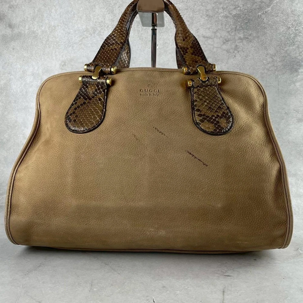 This GUCCI tote is absolutely stunning—the beige leather is so elegant and timeless. The size is perfect for daily use, fitting all my essentials comfortably. Even though it has slight discoloration, it adds a vintage charm. Shipping from Japan was fast, and the seller was super polite and responsive. A great deal for an authentic designer piece!