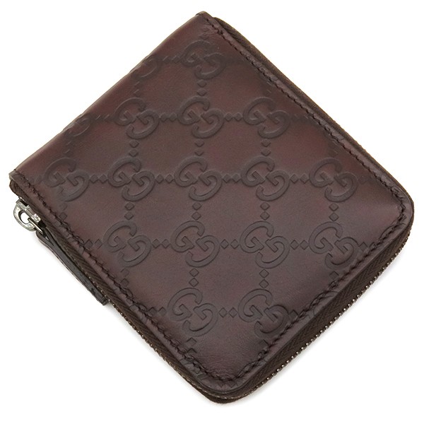 GUCCI Bifold Wallet Guccissima round zip wallet leather Brown SilverMetal