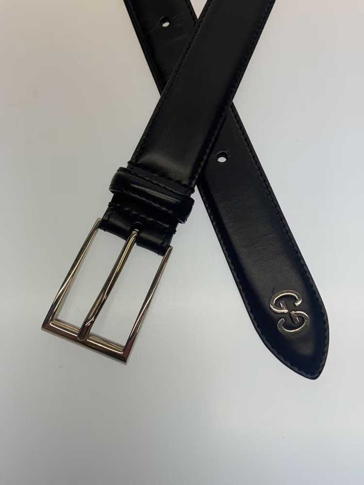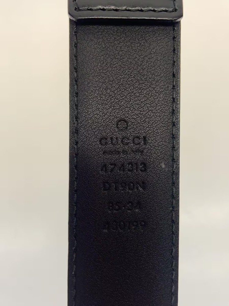 GUCCI GG logo black leather belt for men with hardware scratches, model 368186
