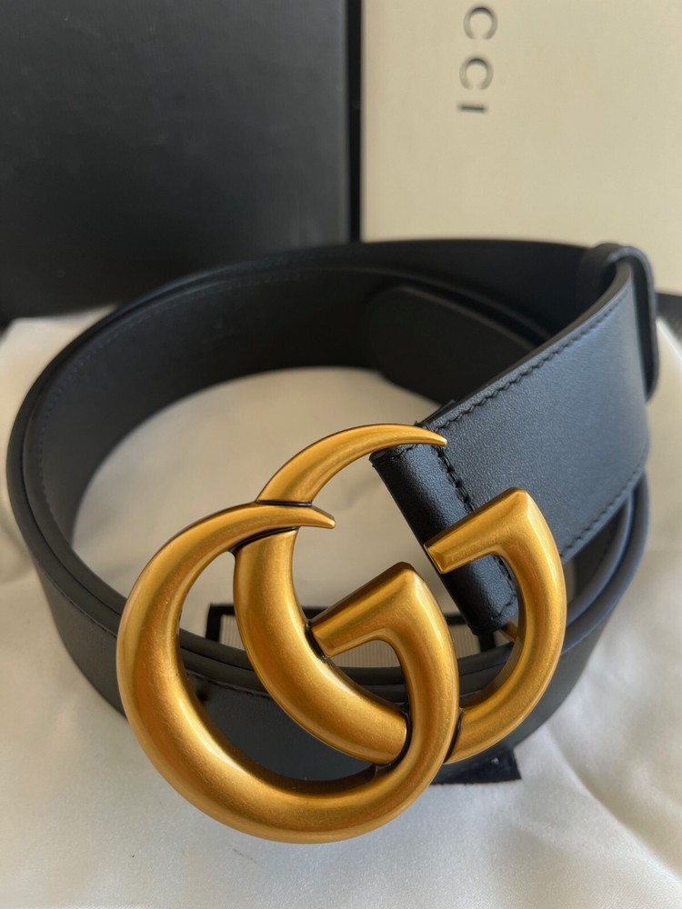 GUCCI Black Leather Belt with Double GG Buckle Size 90 cm fit's 30/32 waist, Box & Dust Bag. IN Excellent Condition like NEW.