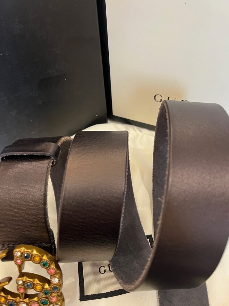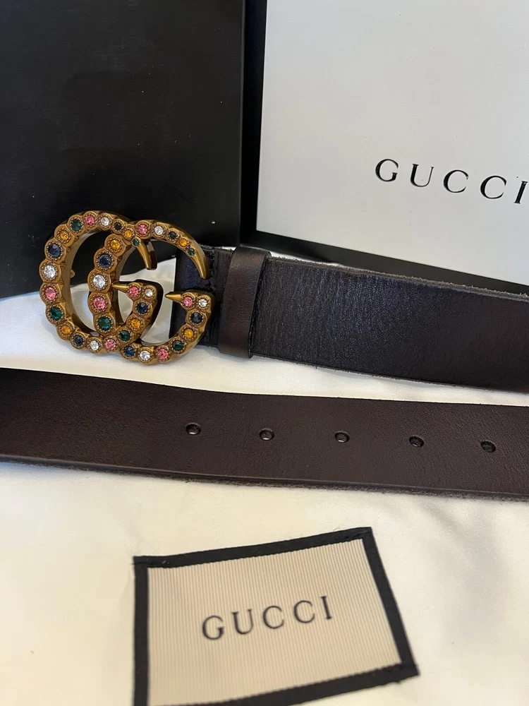 GUCCI Black Leather Belt with Gem's stone's Double GG Buckle Size 75 cm, fit's 24-26 waist, comes with Box & Dust Bag in EXCELLENT CONDITION.