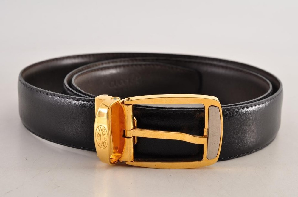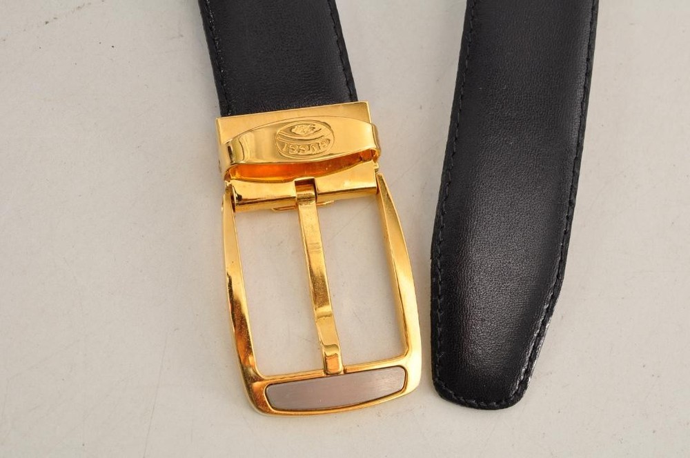 $ 113.1GUCCI G buckle belt in black leather with gold or silver hardware for men pre-owned