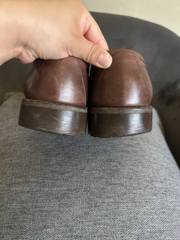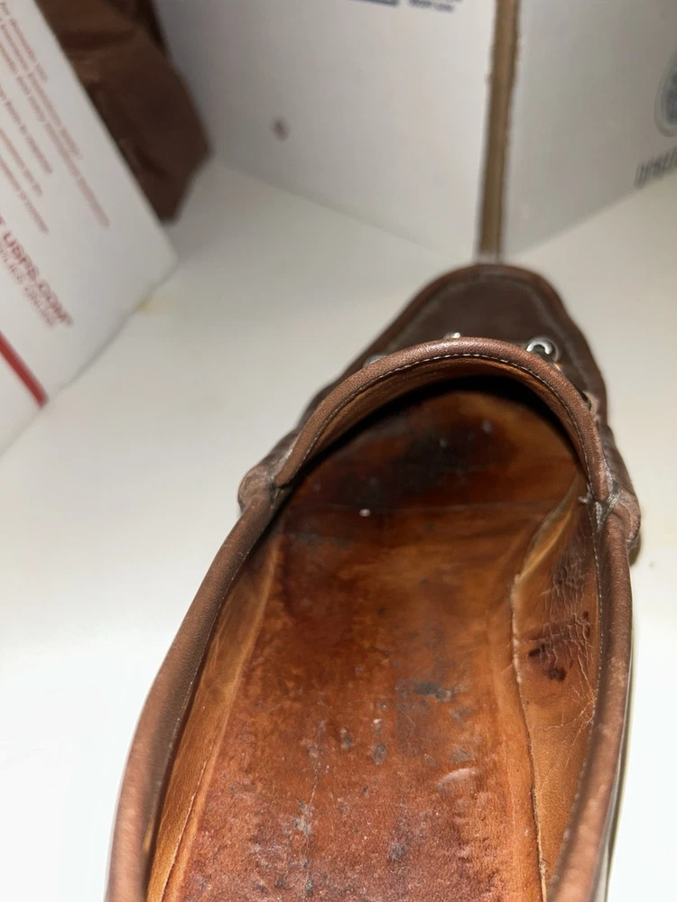1. Great seller. Prompt in responding and shipping. Shoes arrived in almost better condition than advertised. Upper material has very little wear on it, and outside of a few stains on the inside and a missing heel cap, the shoe is basically brand new. A++