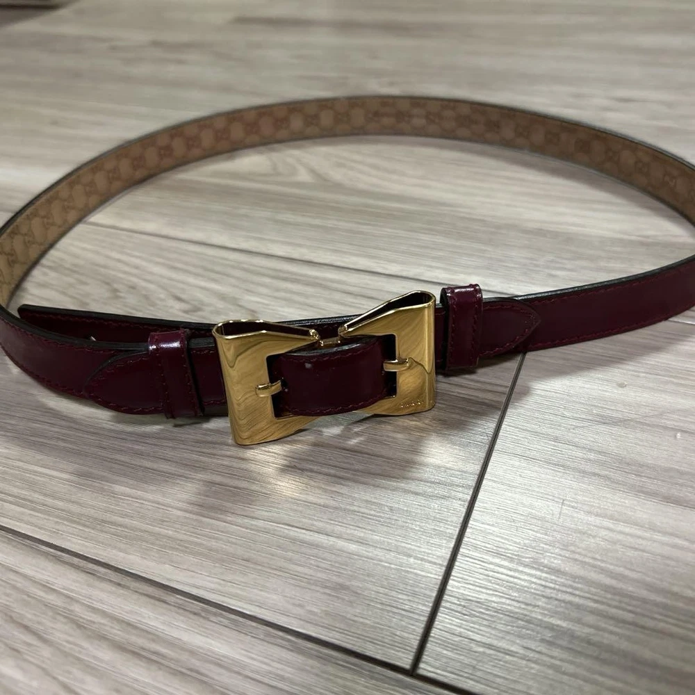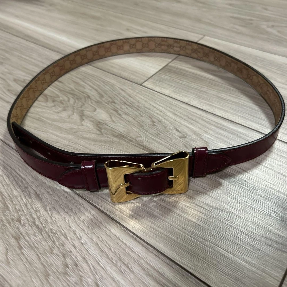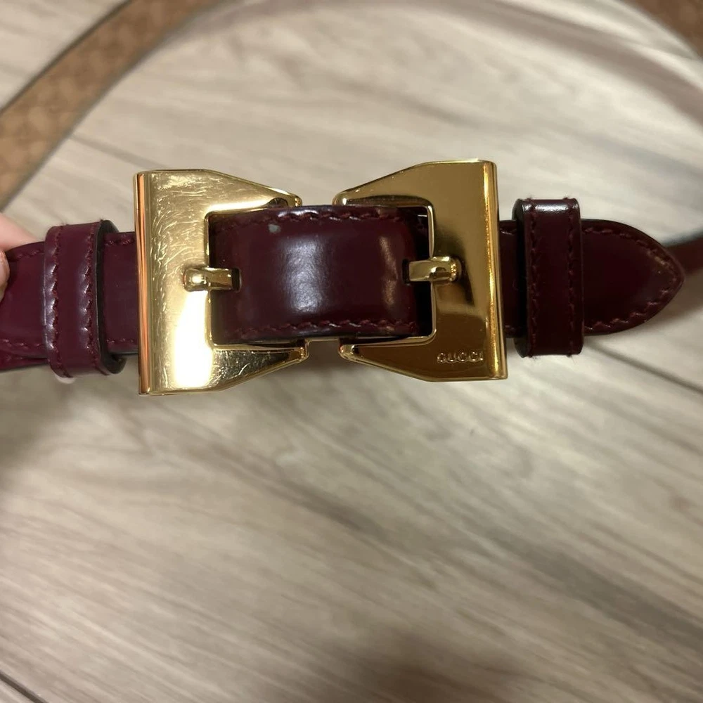 This GUCCI belt is absolutely stunning—the rich burgundy leather looks luxurious and feels high-quality. The perfect width at 2cm makes it elegant yet versatile for any outfit. Love the classic gold buckle and the fact it’s in flawless condition! Shipping from Japan was smooth, and the sizing details were super helpful. A must-have designer accessory!