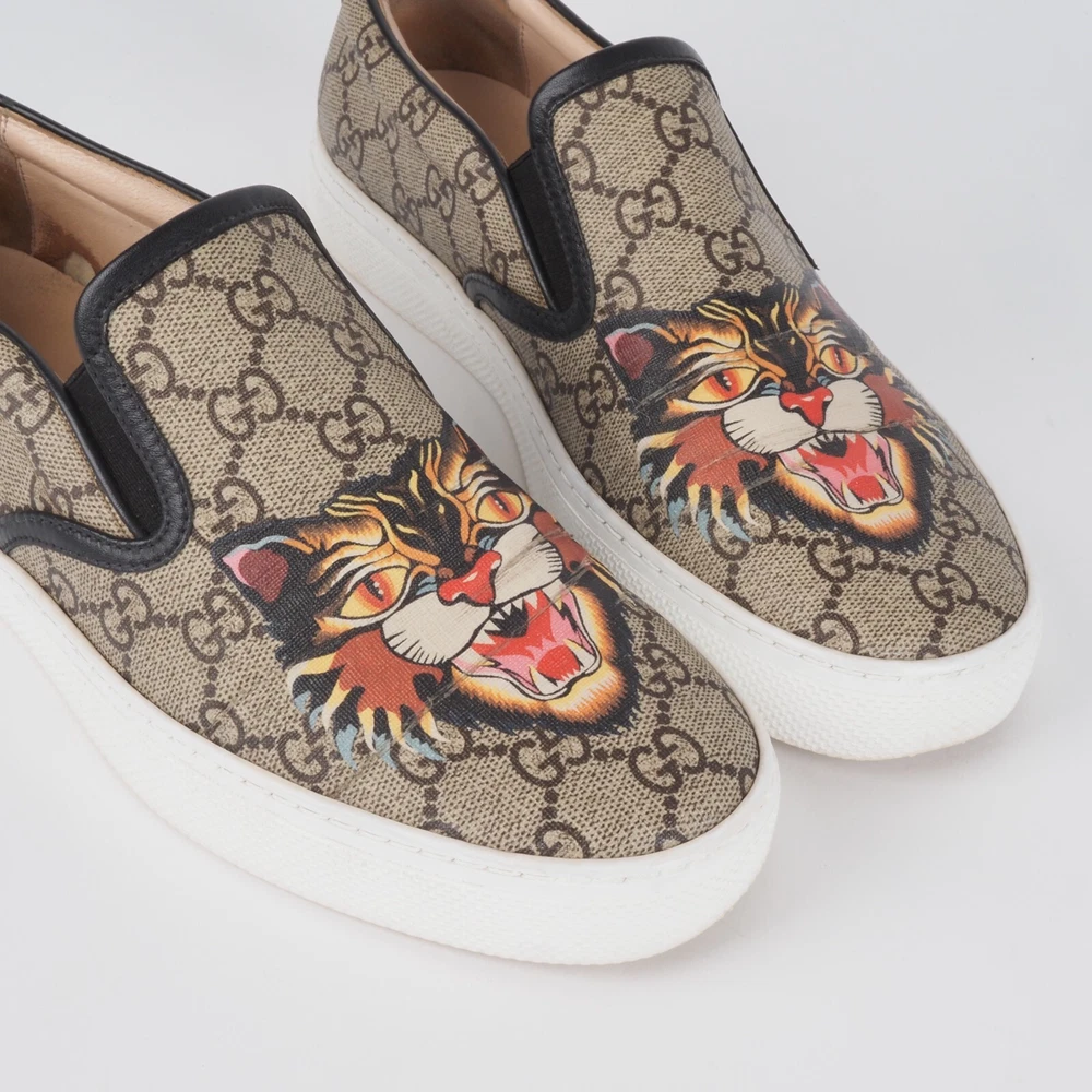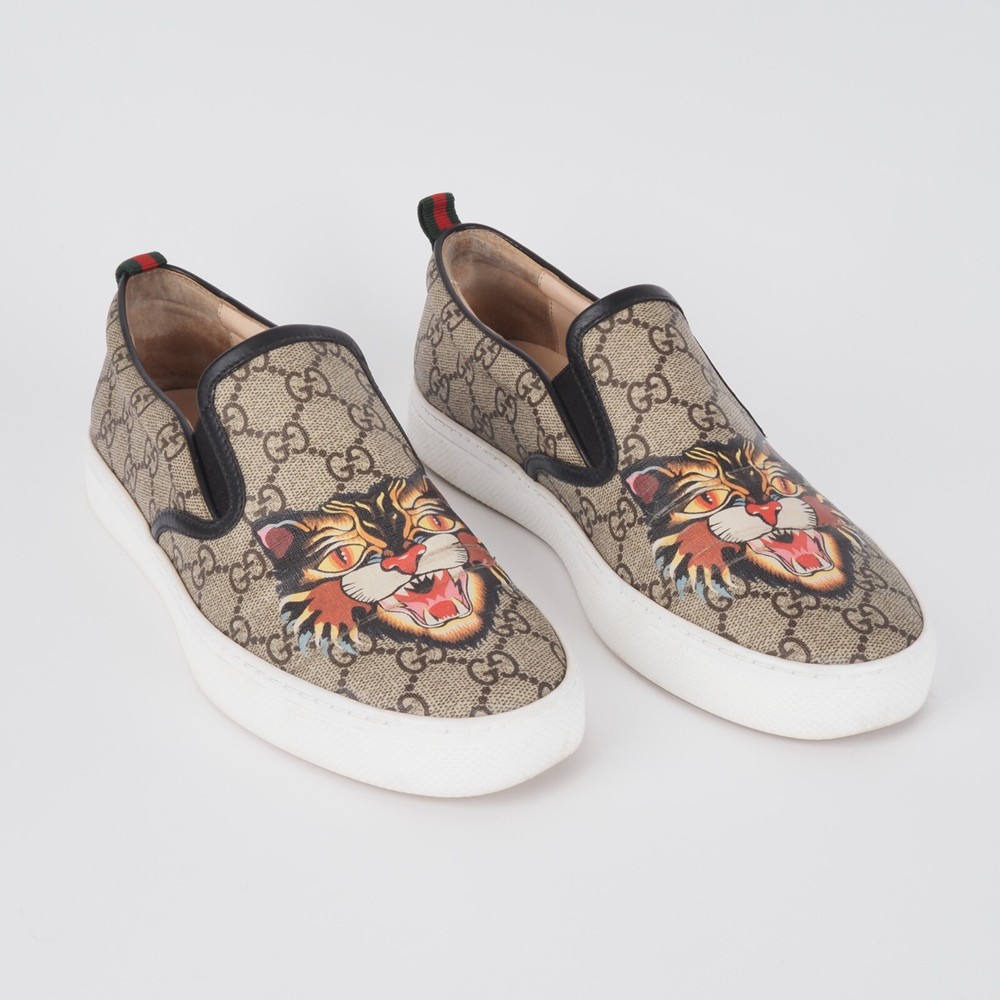 Pixel Safari Fashion eBay Template Free shipping in DE - 30 day return policy - guaranteed authenticity GUCCI Dublin Slip On "Angry Cat" Limited Luxury Designer Shoes OP: €650.00 | Now €275.00 (-58%) Ask question eBay Store DESCRIPTION DETAILS Luxury Designer Shoes ·These stylish slip-on shoes from Gucci are made of leather and GG canvas in Italy. Limited Edition "Angry Cat" men's size 40 but also fits women perfectly. In good used condition with scuffs inside - see pictures.·· for more details and measurements click on DETAILS button. To see the condition and details correctly, all images are high resolution and enlargable. CONDITION N: New with/without tags A+: Like new, used 1 - 2 times A: Very well preserved, treated with care B: Normal signs of use C: Moderate signs of use D: Significant signs of use* E: Needs Repair / Scrap* AUTHENTICITY GUARANTEE We authenticate our products with great care and we also work with independent authenticators. We guarantee the authenticity of our products. If you receive an authentic product from us, we will refund 120% of the purchase price. Differential taxation according to § 25a UStG. Therefore no VAT identification on the invoice. The pictures are part of the item description. All company and brand names given here as well as images, trademarks and figures are the property of their owners and are used only for identification and description of the products. shoes for Unisex Style Shoes Upper GG Canvas Color: Beige Accessories None Size EU 40 Size UK 6 Heel Height -- cm Platform Height -- cm Shaft Height -- cm Outsole Rubber Handmade YES Vintage NO Made in Italy Shipping Free shipping takes place within 2 working days by insured DHL Parcel. Collection during our opening hours in our shop in Munich. Payment We accept the following payment methods: Sofortüberweisung Paypal Klarna Credit Card Cash on site Return You have the right to cancel this contract within 30 days without giving any reason. Design & Development by Pixel Safari wonderlustking*emporium https://www.ebay.com/str/wonderlustkingemporium #1e1879 fashiontemplate 160