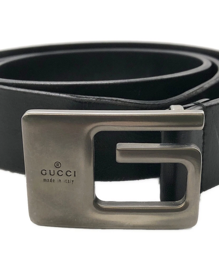$ 85.28GUCCI GG Logo Black Leather Belt with Buckle Authentic Made in Italy Pre-Owned Hardware