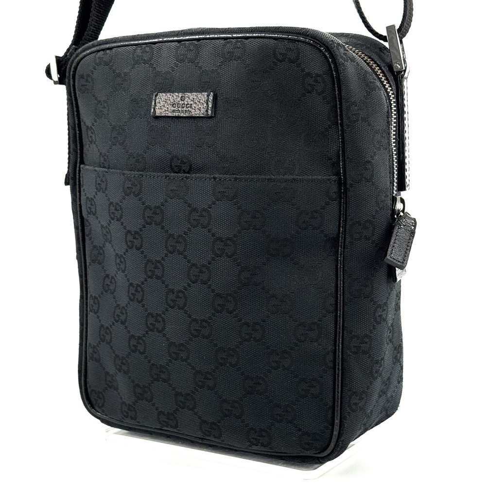 GUCCI GG Canvas Leather Crossbody Shoulder Bag Black Authentic Japan