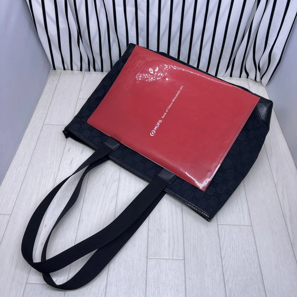 GUCCI GG Canvas Tote Bag in Black Authentic G07142076