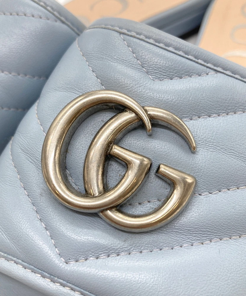 Thank you for your visiting our page! Condition Description GUCCI GG Marmont Sandals Blue Women’s US5 Auth From Japan Size: Platform: 1 cm ≈ 0.4 inches Heel: 1.5 cm ≈ 0.6 inches Shell width: 7.5 cm ≈ 3.0 inches Color: Blue Condition: Slightly scratched and dirty Please Note shipping from Japan. Policy Payment You can use various payment methods based on eBay Managed Payments. Import duties, taxes and charges are not included in the item price or shipping charges. These charges are the buyer's responsibility. Cancellations & Returns Cancellation or returns will be accepted only if the item has an obvious problem that was not mentioned in the listing description. If that, please let us know within 3 days you got the item. Buyer is responsible for shipping costs and any charge incurred shipping products back. International Buyers Import duties, taxes and charges are not included in the item price or shipping charges. These charges are the buyer's responsibility. Please check with your country's customs office to determine what these additional costs will be prior to bidding/buying. These charges are normally collected by the delivering freight (shipping) company or when you pick the item up - do not confuse them for additional shipping charges.