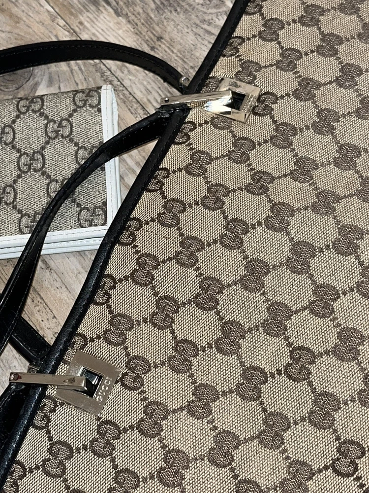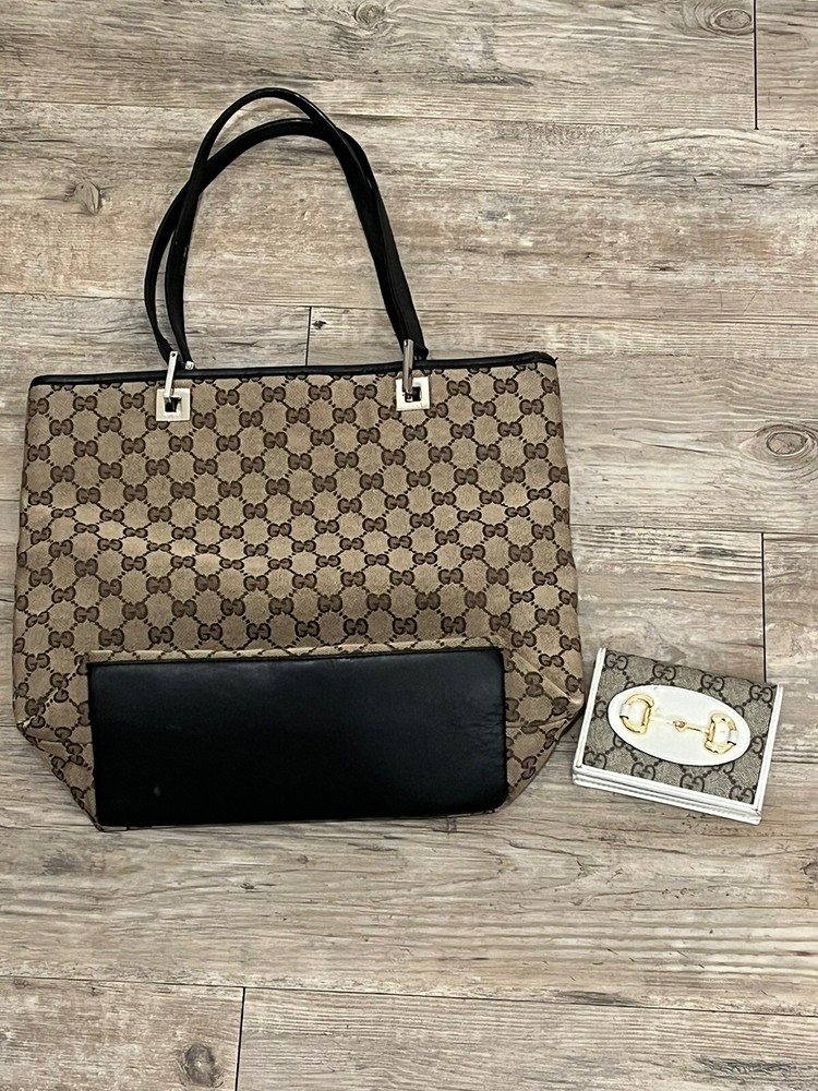 GUCCI GG 2ct Monogram Tote Bag Hand Bag Brown W/ Gucci Horsebit Wallet Lot. Condition is Pre-owned. Shipped with USPS Priority Mail.