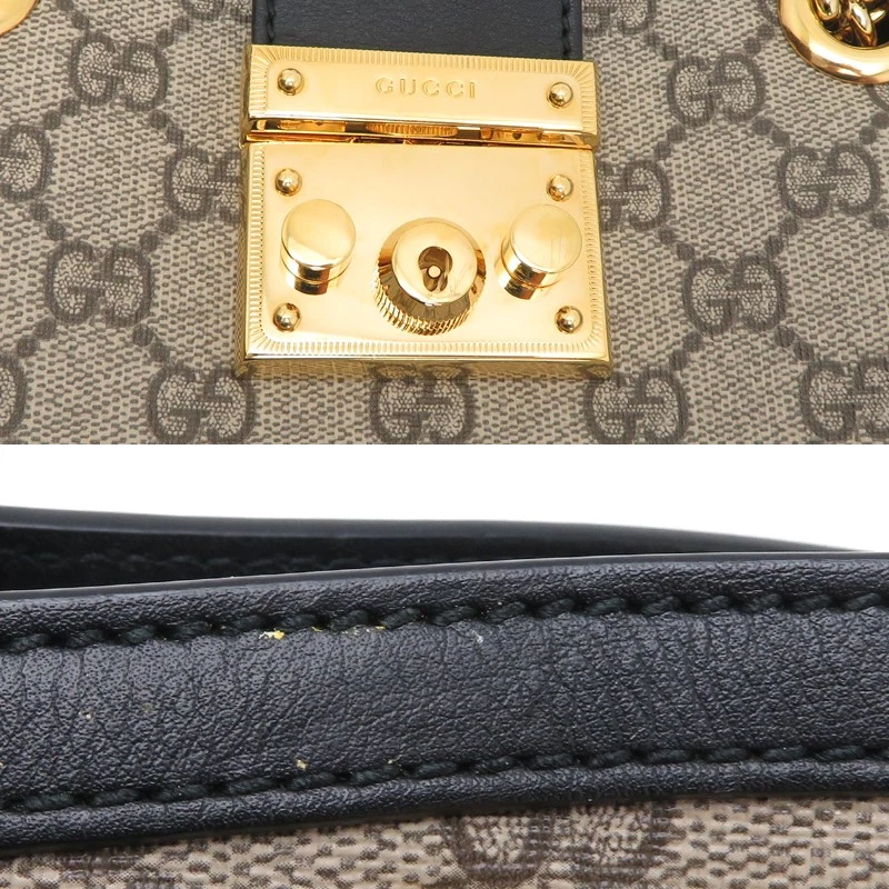 1. This GUCCI Padlock tote is absolutely stunning! The GG Supreme canvas is luxurious yet durable, and the gold padlock adds a chic touch. Perfect size for daily essentials—roomy but not bulky. The craftsmanship is impeccable, and the shoulder strap makes it comfortable to carry. Shipping was fast, and the bag arrived in perfect condition. A must-have for any fashion lover!