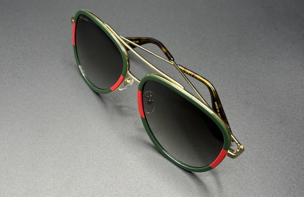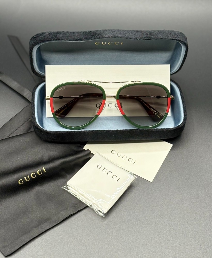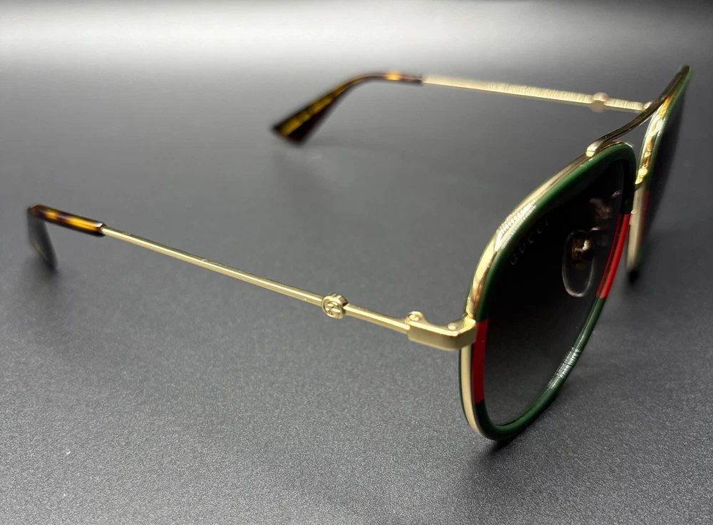 Free shipping from Miami, Florida! Delivery time 1-4 business days. Item Details: • Brand: Gucci • Model: GG0062S 003 • Gender: Unisex • Frame Color: Green/Red (Signature Gucci Web) • Lens Color: Grey Gradient • Frame Shape: Aviator • Frame Material: Metal • Lens Material: CR-39 • Lens Protection: 100% UV (UVA/UVB) • Lens Width: 57 mm • Bridge Width: 17 mm • Temple Length: 140 mm • Made in: Japan Features: • Authentic Gucci designer sunglasses • High-quality Japanese craftsmanship • Lightweight metal frame with classic double bridge • Adjustable nose pads for comfort and secure fit • Iconic green/red Gucci stripe on temples • Discreet Gucci logo on lens and temple • Suitable for both men and women What’s Included: • Original Gucci protective case • Microfiber cleaning cloth Condition: Brand new.