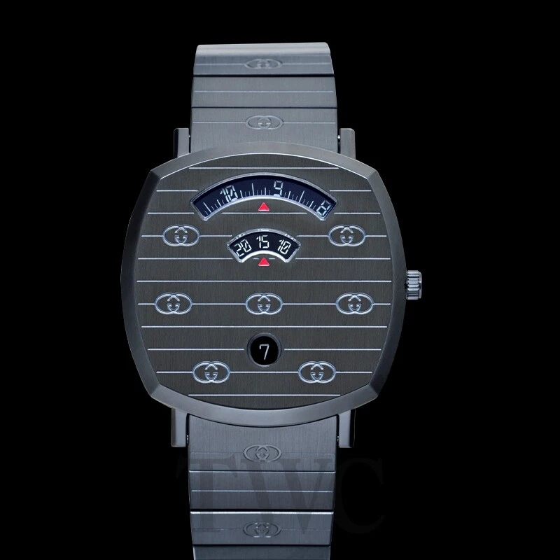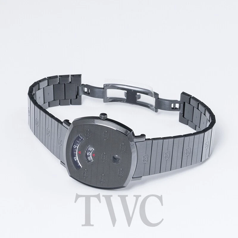 Full Set Gucci NEW Grip Quartz Black Dial Stainless Steel Unisex Watch. Condition: NEW Brand: Gucci Ref. No.: YA157429 Model: Grip Dial Color: black Movement: Quartz Case Material: Stainless Steel Bracelet Material: Stainless Steel Gender: Unisex