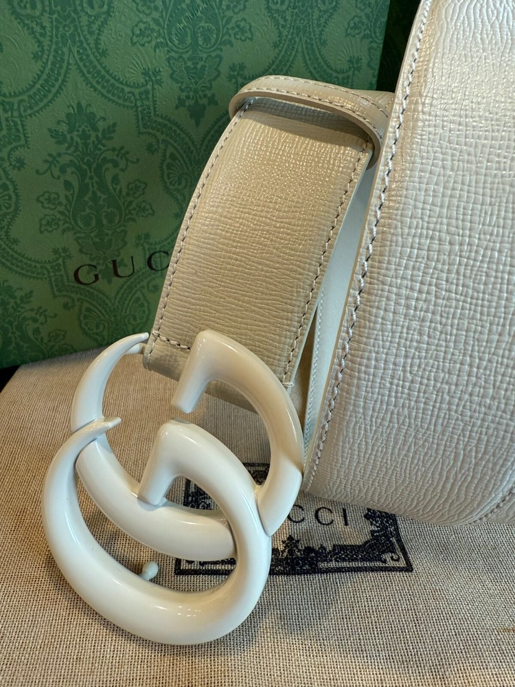 GUCCI MARMONT DOUBLE GG BUCKLE WHITE LEATHER BELT SIZE 80 CM FIT'S 26/28 WAIST, Comes with Box & Dust Bag. IN EXCELLENT CONDITION LIKE NEW.