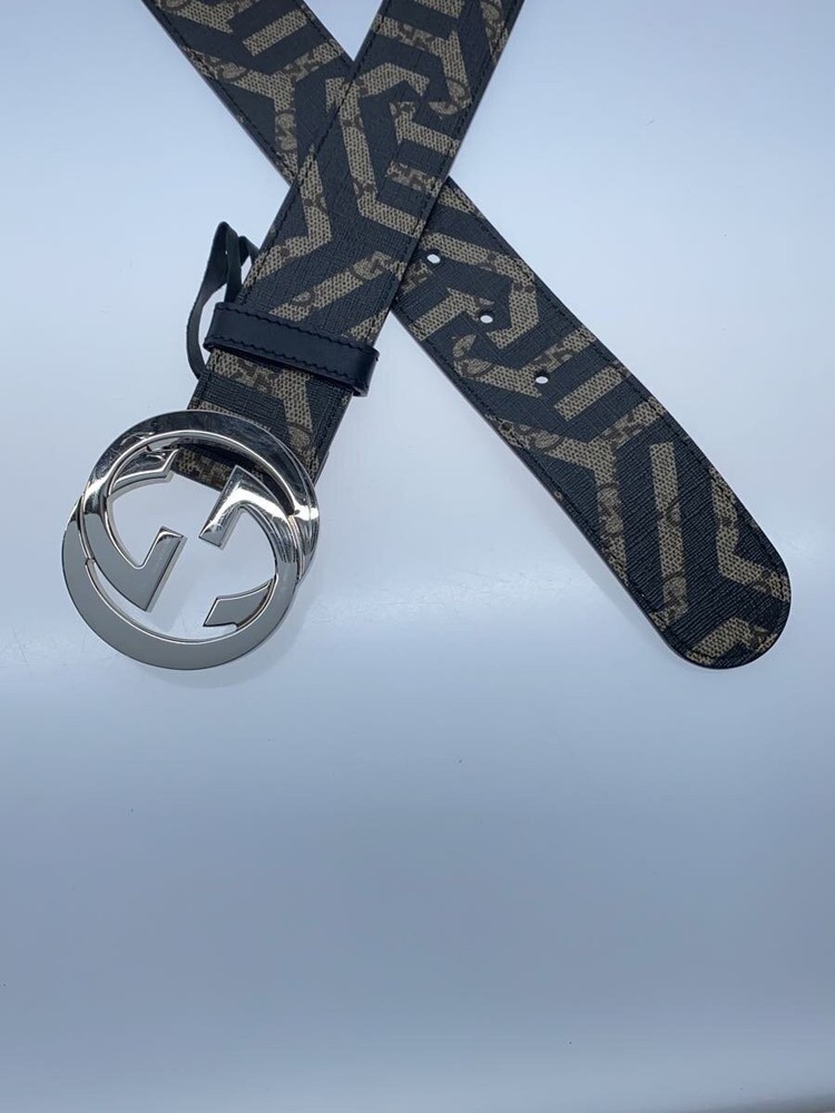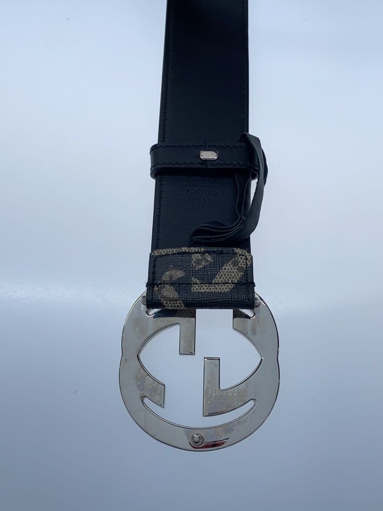 GUCCI Mens Black PVC All-Over Print Belt with Minimal Buckle Scratches 411924