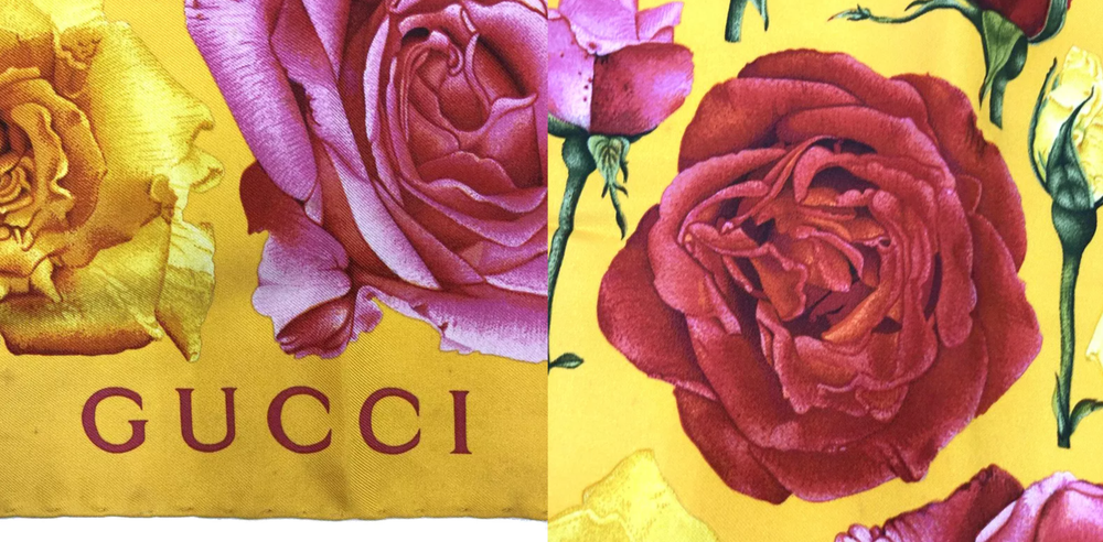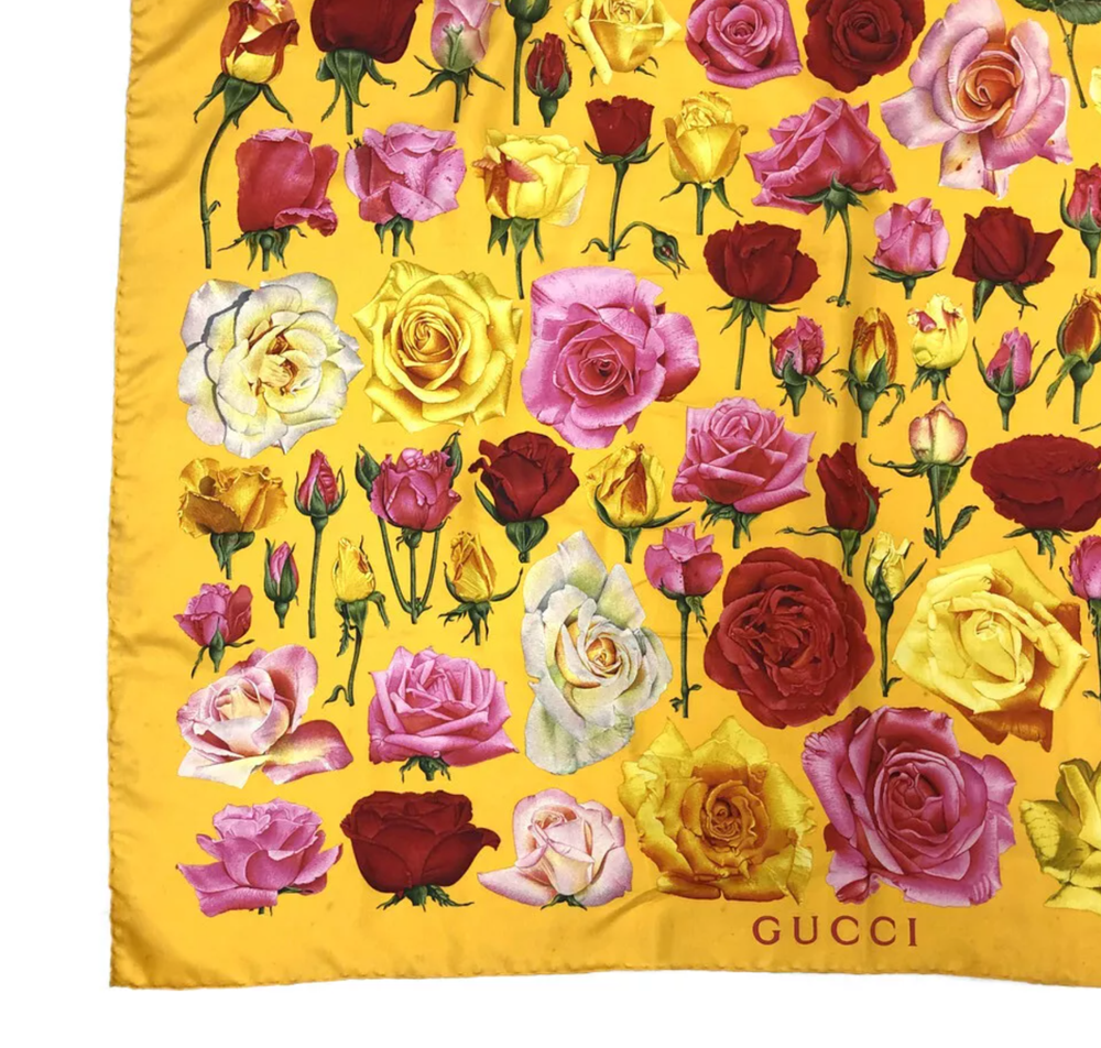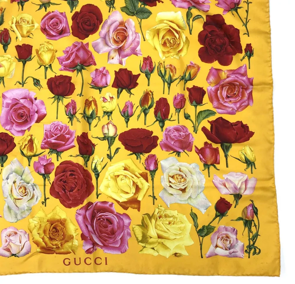 GUCCI model: Rose Motif material: 100% silk color: orange dimensions: 34" x 34" (86cm x 86cm) made in: italy vintage new old stock, gift box included. no signs of use gbstock# 0000086
