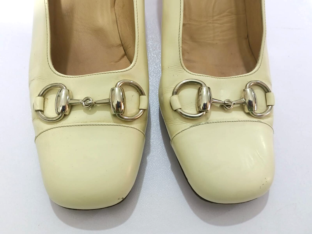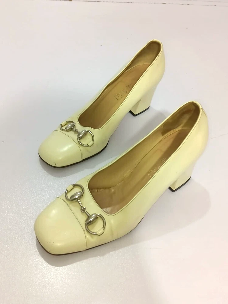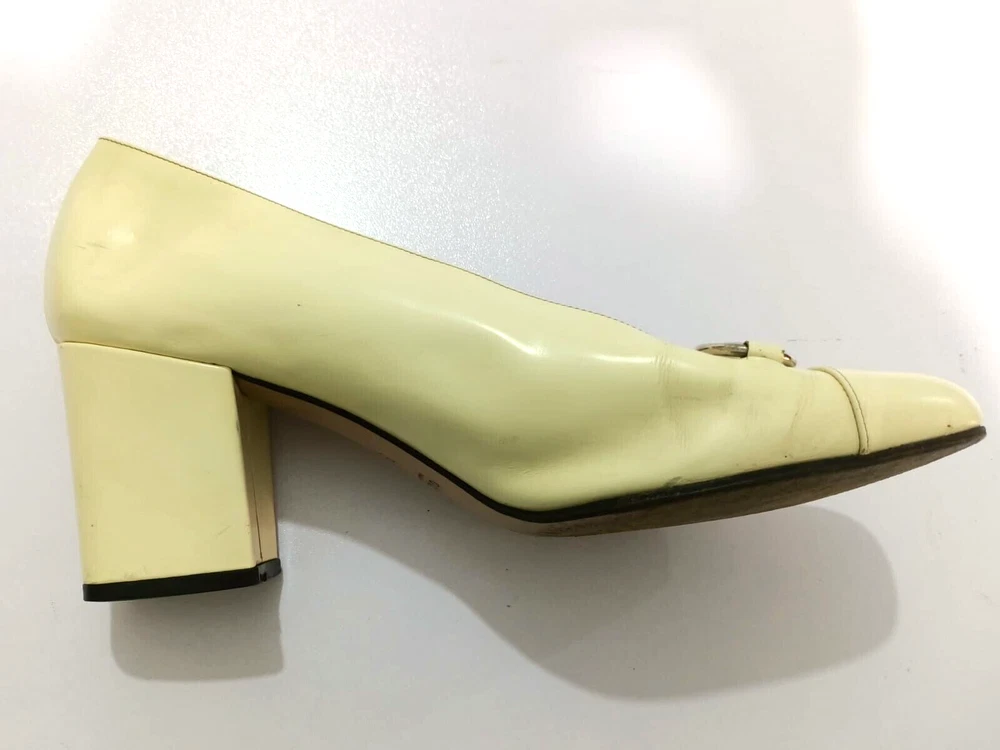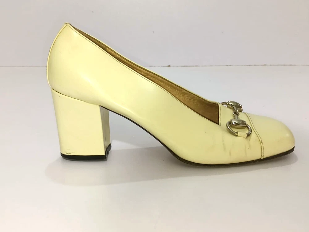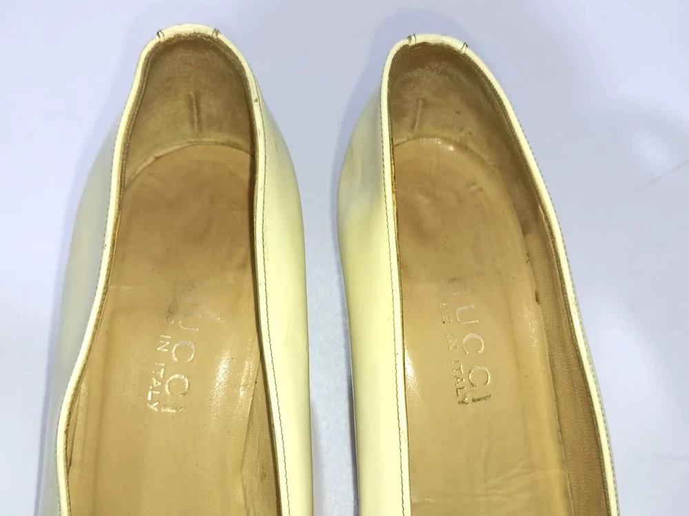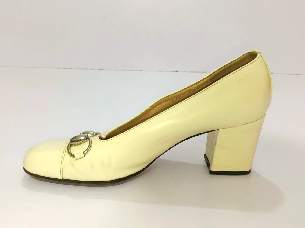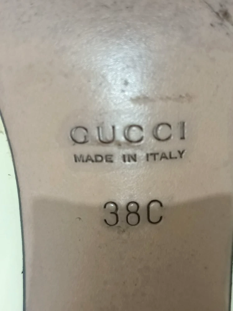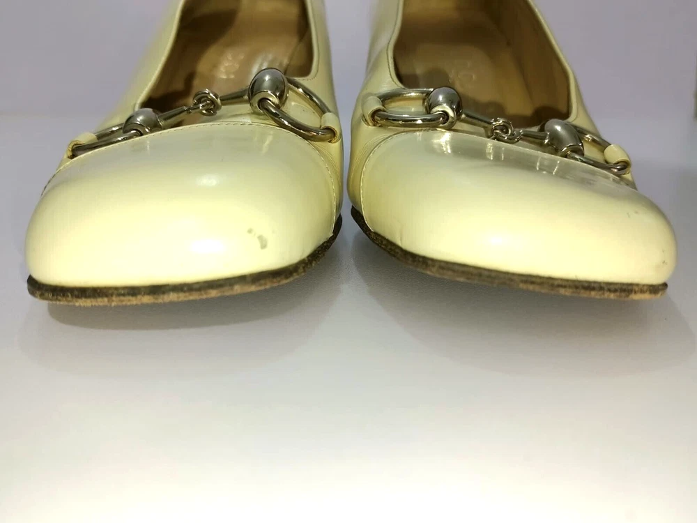 GUCCI PATENT LEATHER BLOCK HEELS PUMPS SIZE, EU38,US8, IS IN USED CONDITION, > INNER SIGN OF USE, > DOWN SIDE THE SOLE USED MARKS, > BOTH TOES HAVE LITTLE SCRATCHES SHOWING IN PICTURE NUMBER 20, > ONE HEEL LEATHER HAS MINOR TAKEN OUT SHOWING IN PICTURE NUMBER 11, > DUE TO USE BESIDE THE SHOES PATENT LEATHER LITTILE LINING IS SHOWING CAN SEE IN PICTURE NUMBER 12, 13, 14, 15 & 20, >ON ONE BACK SIDE THE HEELS MINOR PATENT LEATHER COLOUR HAS COME OFF SHOWING IN PICTURE NUMBER 22, > REQUESTED TO SEE ALL PICTURES VERY CAREFULLY BEFORE THE BUYING CONDITION IS CLEARY SHOWING IN ALL PICTURES, > IF HAVE ANY QUESTIONS TO ASK THEN FREELY MESSAGE ME IN INBOX FOR ANY ASSITANCE, > NO RETURN IS ACCEPTABLE, > NO DUST BAG AND BOX WITH THIS ITEM, > SHIPPED WITH DHL INTERNATIONAL EXPRESS FASTER SERVICE, NOTE : The Buyer is responsible for paying All import taxes and duties on international shipments.