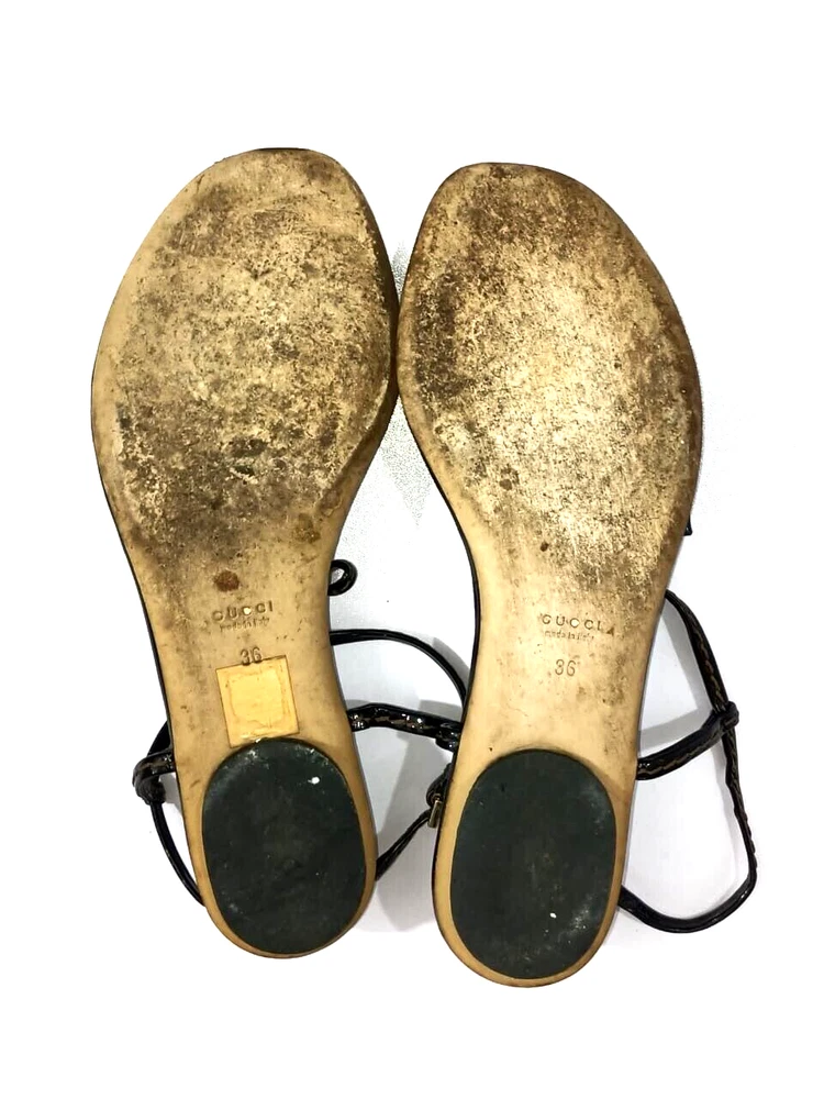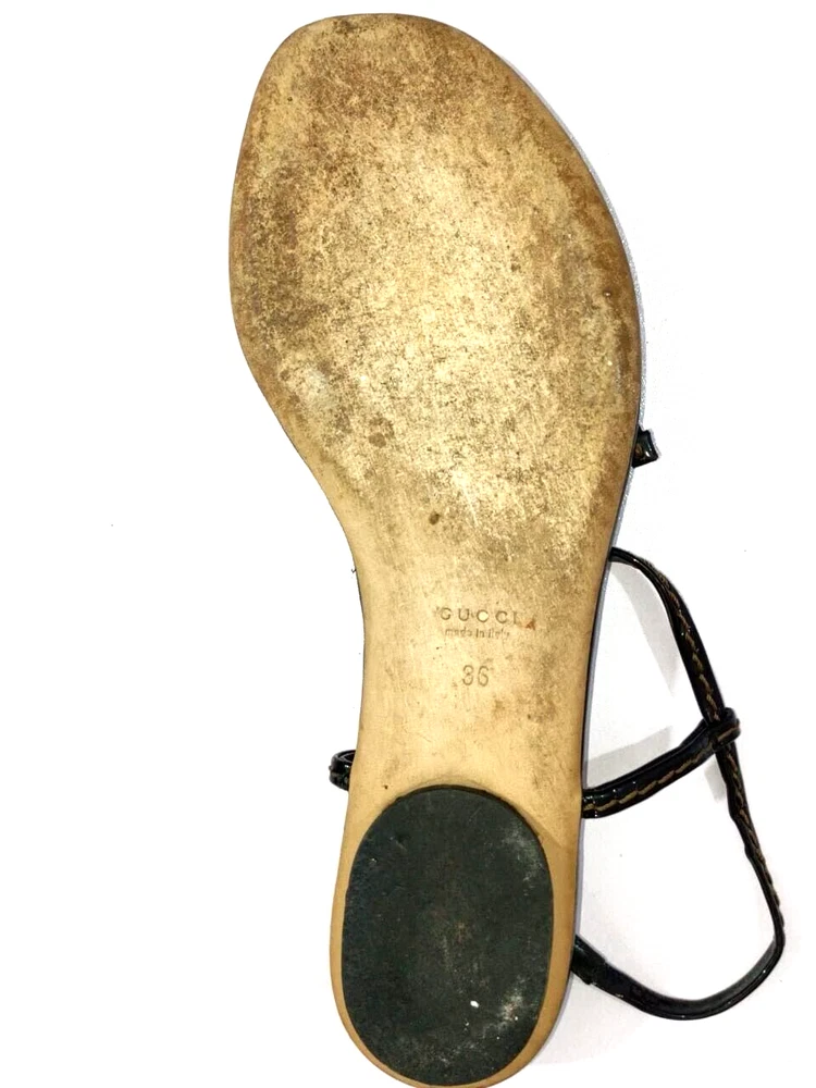 GUCCI THONG FLAT PATENT LEATHER SANDAL SIZE, EU36, US6, is in pre-owned but condition is Good, > INNER MINOR SIGN OF USE, > DOWN THE SOLE USED MARKS, > OVERALL CONDITION IS GOOD IN PRE-OWNED, > SEE ALL LISTING PICUTURES VERY CAREFULLY CLEARLY CONDITION IS SHOWING IN ALL PICTURES, > IF HAVE ANY QUESTIONS RELATED ITEM THEN FREELY MESSAGE ME IN INBOX FOR ASKING ANYTHING, > NO RETURN IS ACCEPTABLE, > NO DUST BAG AND BOX WITH THE ITEM, > SHIPPED BY DHL INTERNATIONAL EXPRESS FASTER SERVICE,