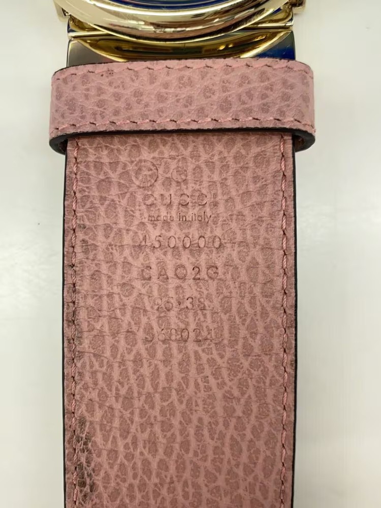 $ 165.47GUCCI Mens Navy Monogram Leather Belt 673921